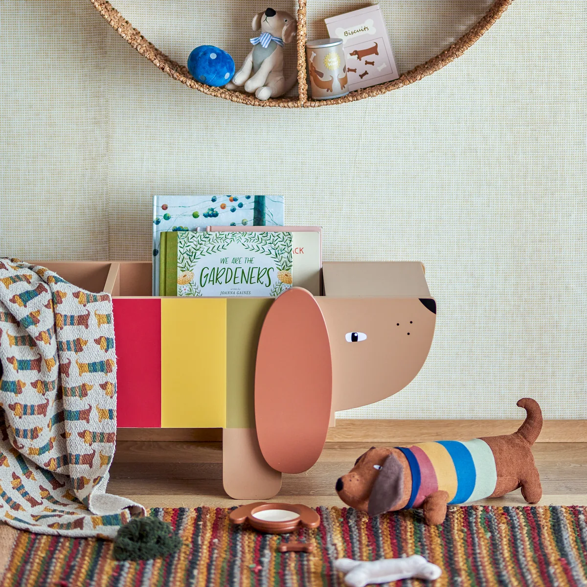 The Charlie book stand from Bloomingville Mini is not only a practical piece of furniture, but also an adorable design element that brightens up the children's room in a charming way. With its cute dog motif and appealing colors, it quickly becomes an eye-catcher and arouses the curiosity of little ones. The two spacious compartments offer plenty of storage space for books, toys and even cuddly teddy bears. This book stand invites children to discover, organize and play, promoting order in the children's room as well as stimulating their creativity and enjoyment. The Charlie book stand is therefore the ideal combination of functionality and style to enrich any child's room.