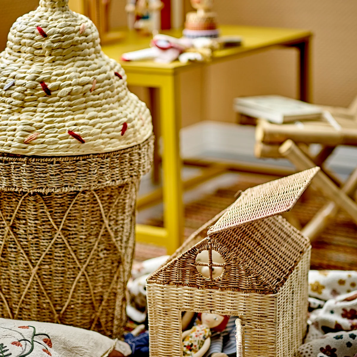 The Cillie basket with lid from Bloomingville Mini is not only a functional storage element, but also a delightful design piece that transforms the children's room into a sweet waffle ice cream adventure. With its playful shape and colorful sprinkles on top, this basket stimulates the imagination of little ones. It offers generous storage space for toys, books and other treasures while adding a playful and decorative touch to the room. The removable lid makes it easy to access the contents and allows little hands to easily reach and tidy up their favorite items. The Cillie basket is therefore a perfect combination of fun and functionality in the children's room.