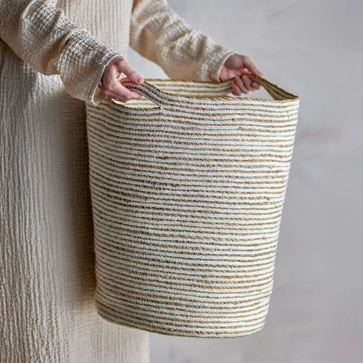 Basket made of seagrass and jute in a timeless design