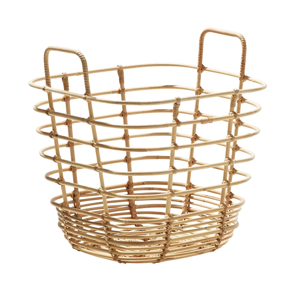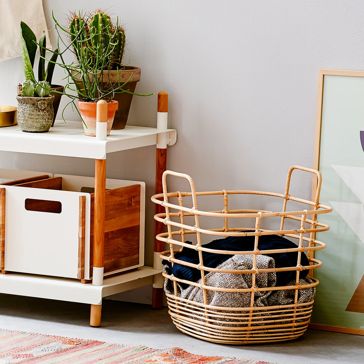 The Sweep Basket from Foersom & Hiort-Lorenzen for Cane-line is a wonderful way of storage. Pillows, blankets, but also toys or magazines can be stored here and are still immediately at hand. The coarsely woven basket is handmade from natural rattan. The natural material creates warmth in every ambience and appears airy and light.