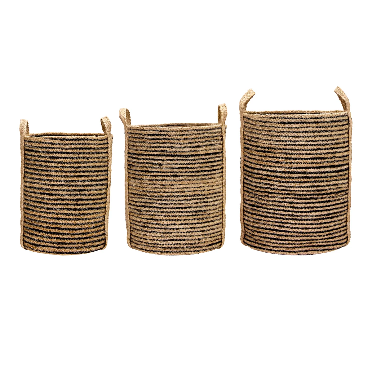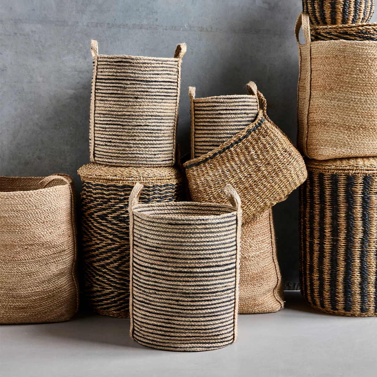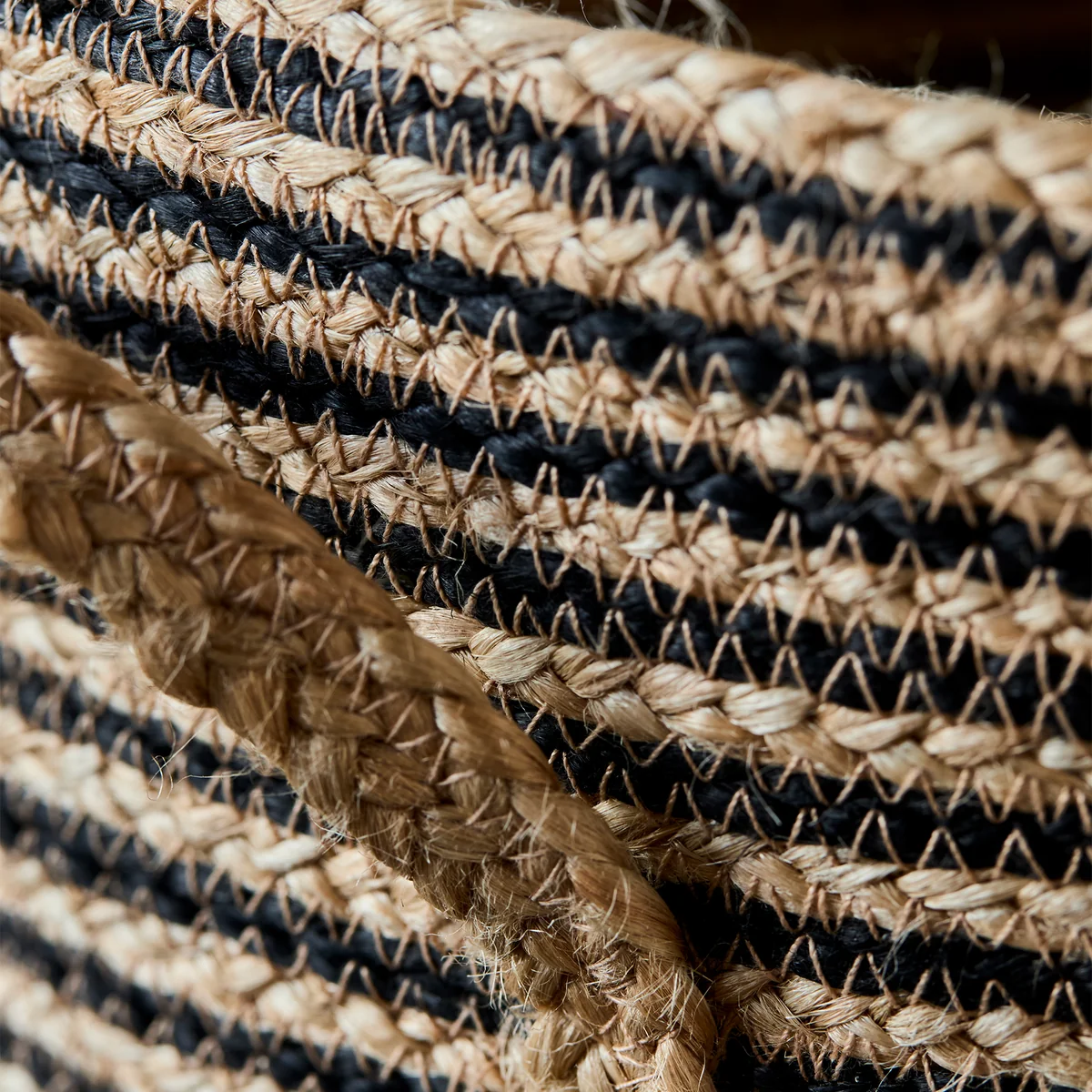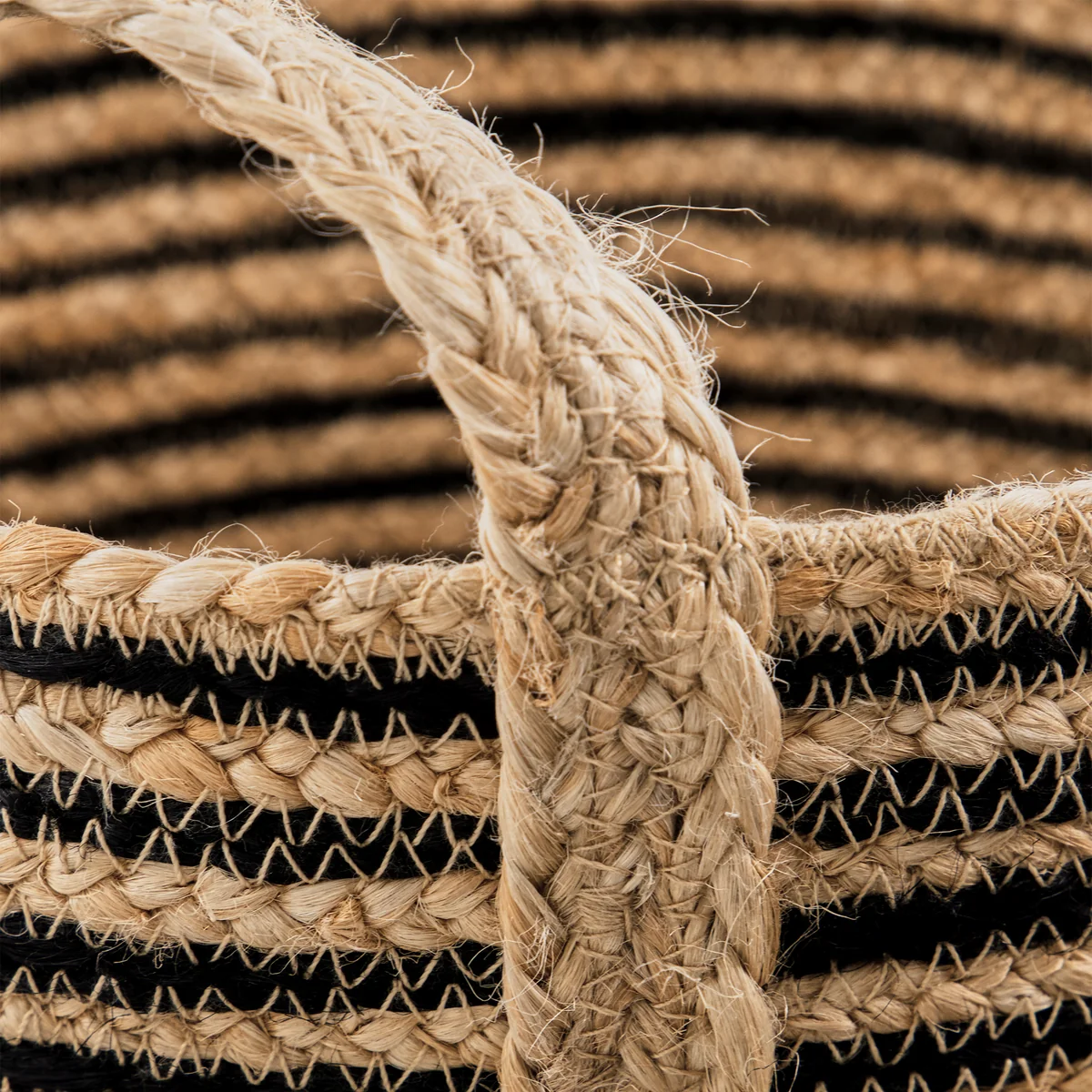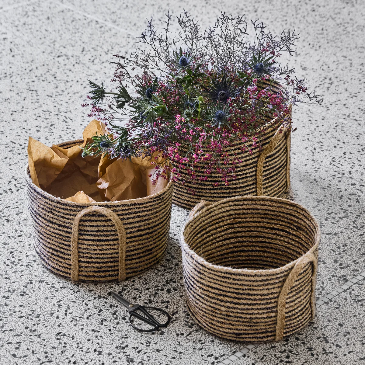The Dungi storage baskets from House Doctor combine handmade design with functional everyday practicality. Made from 100% jute, they bring a warm, authentic touch to your home with their natural material and elegant striped pattern in black and natural. Whether for blankets, magazines, toys or laundry - thanks to the practical handles, the baskets are easy to transport and can be used flexibly in different rooms. A stylish helper for tidiness and comfort.