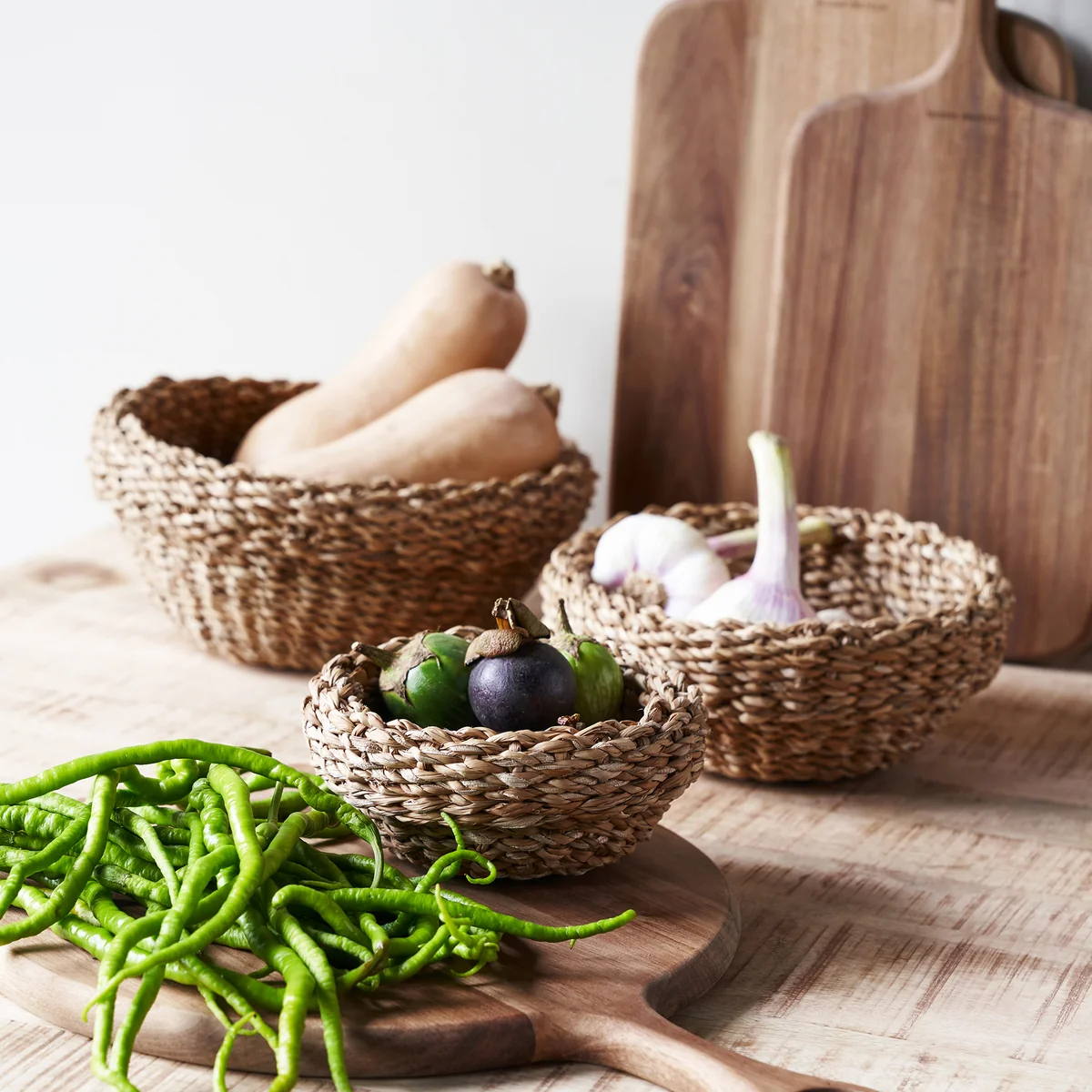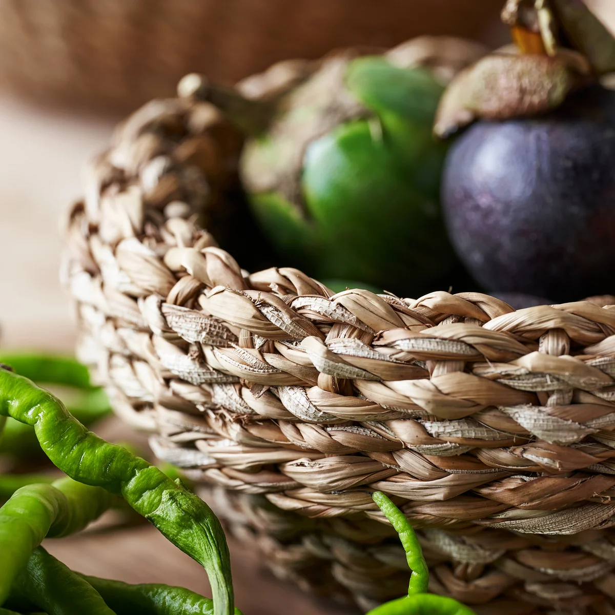 The Otta baskets from House Doctor offer a stylish and practical solution for storing a wide variety of items. The set consists of three seaweed baskets in different sizes, which bring a warm and natural atmosphere to any room with their woven design. Whether as charming bread baskets in the kitchen, for neatly storing small items in the hallway or as decorative elements in the living room - the Otta baskets fit seamlessly into any environment and offer an attractive alternative to conventional storage boxes. Their versatility and organic material make them an indispensable accessory for a cozy home.