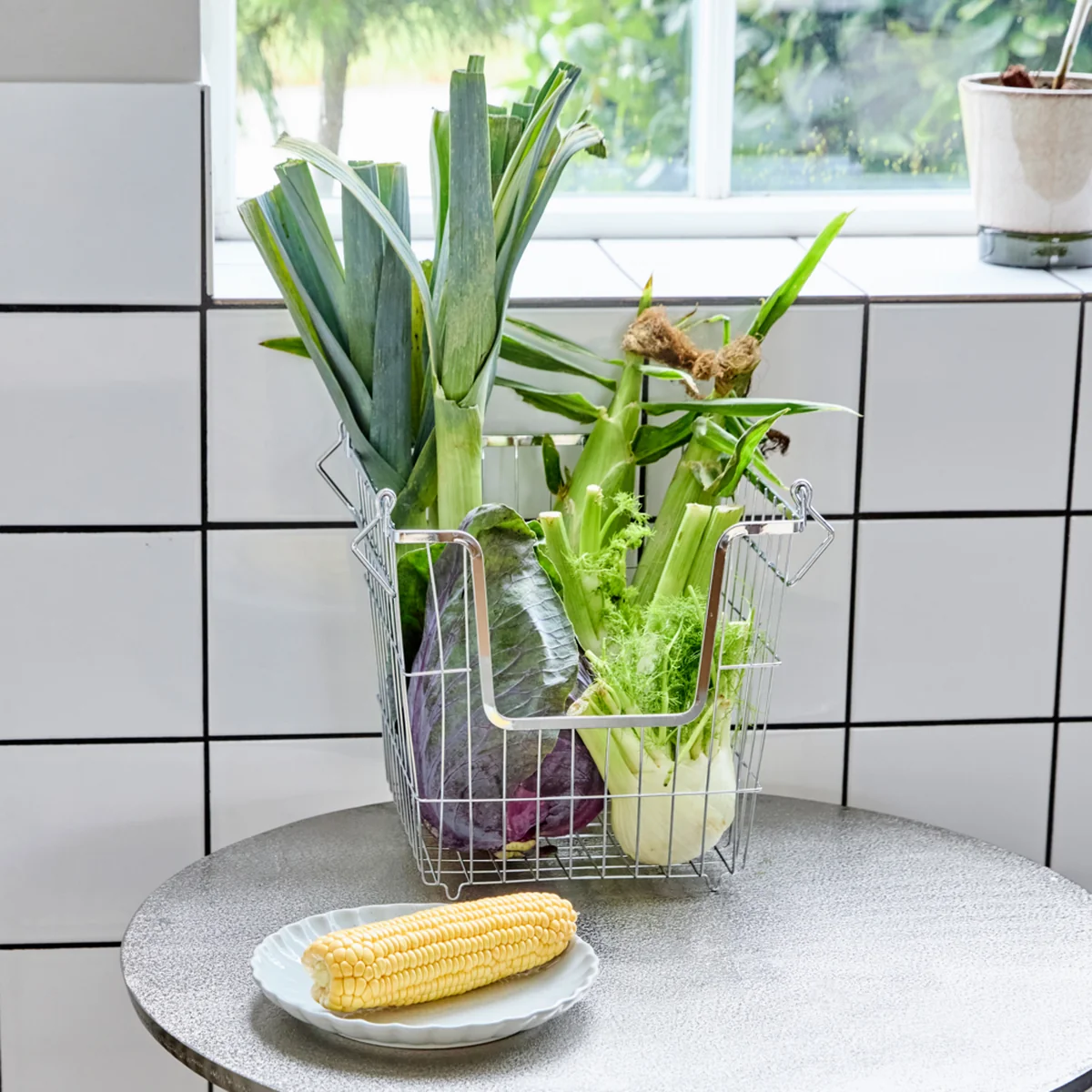 The Taw storage basket from House Doctor turns storage into a stylish part of your interior. Made of chrome-plated steel, the basket impresses with its elegant, minimalist look and versatility.