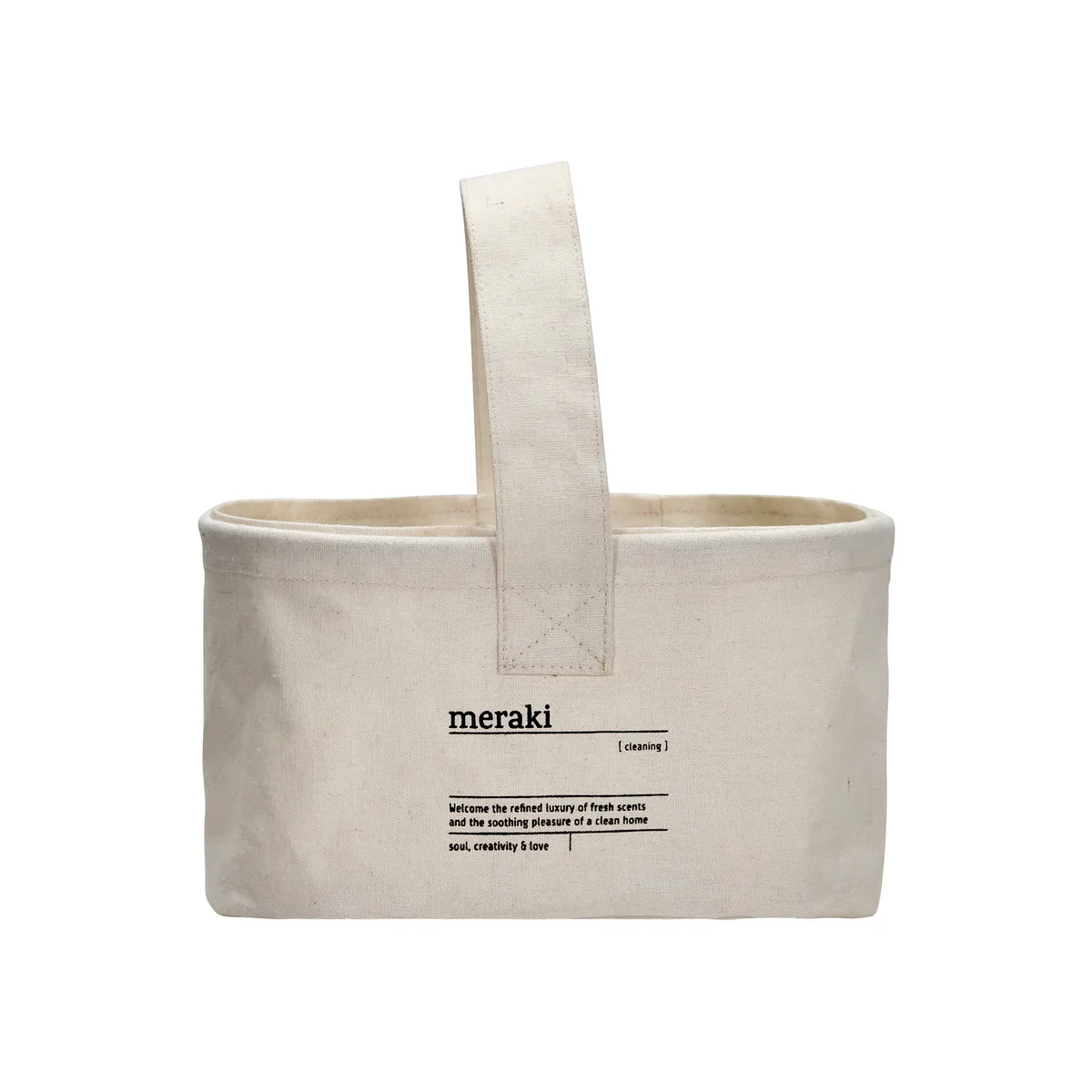 The Clean storage basket from Meraki combines functional design with a stylish look. Made from a high-quality mix of polyester, cotton and viscose, it is dimensionally stable and comfortable to use. The design with integrated divider makes it easy to store cleaning utensils neatly, but also finds a decorative place in the bathroom, in the laundry room or on the shelf.