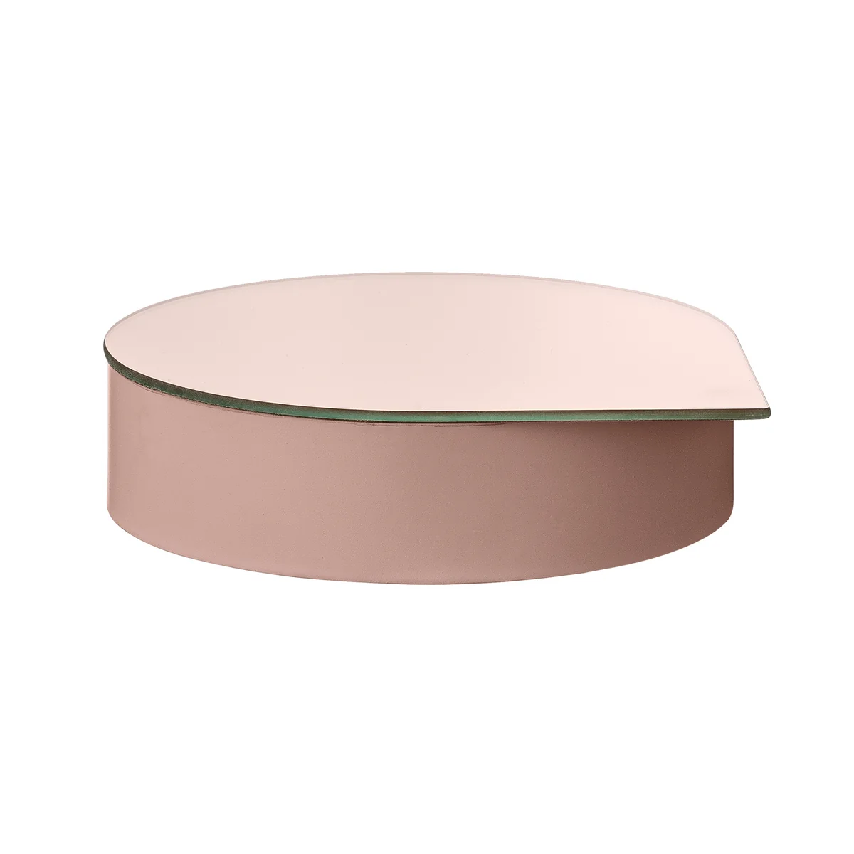 The lid also functions as a mirror and can be easily slid into the narrow gap between the two smallest compartments. Thanks to its drop shape, the mirror has a secure stand there and can be useful for putting on necklaces and earrings. Gutta is also ideal for storing cosmetics, and the mirror can be used for the morning routine.