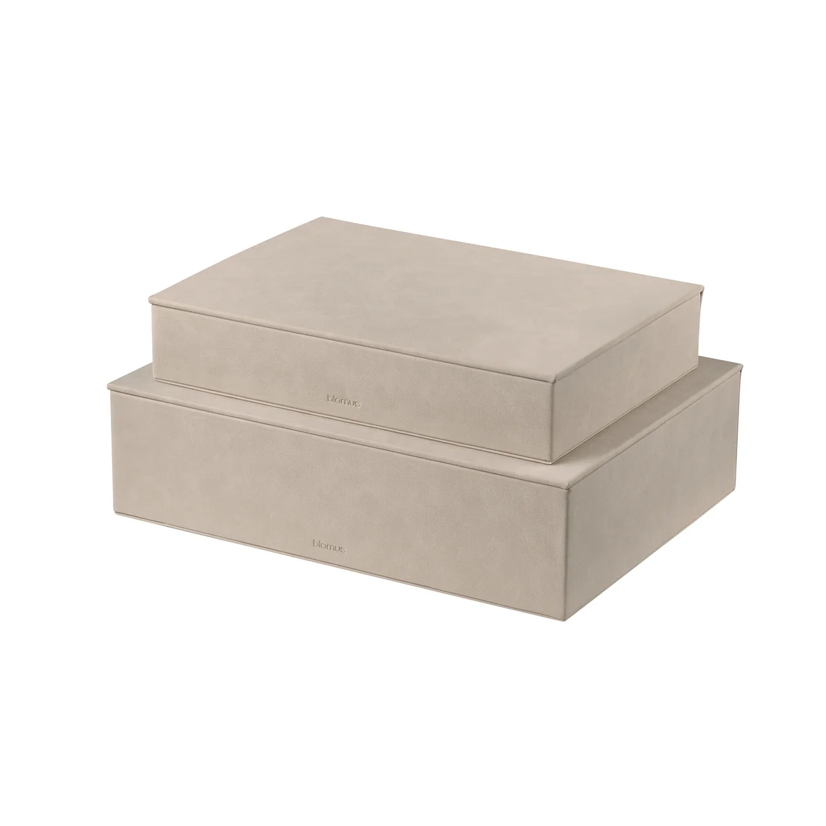 Thanks to the lid, the boxes can be securely closed so that their contents remain protected and a tidy appearance is ensured at the same time. The PU suede cover gives the boxes a high-quality look that is an eye-catcher both on the desk and on shelves or cupboards.