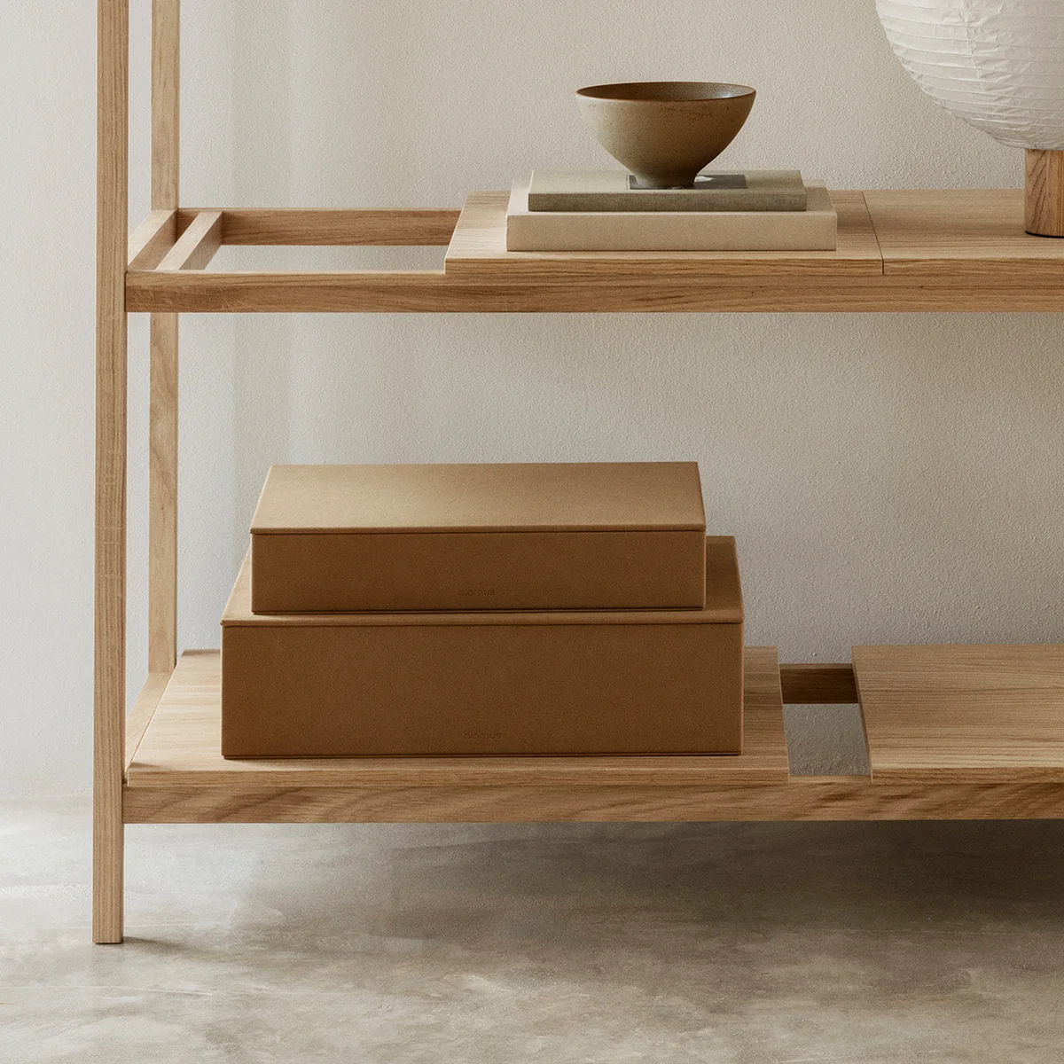 The Sahla storage boxes from Blomus combine functional design, clean lines and a pleasant feel to create stylish organization aids. Whether for office utensils, jewelry, cosmetics or bathroom accessories - the boxes offer a wide range of uses and ensure that small items can be elegantly stowed away.