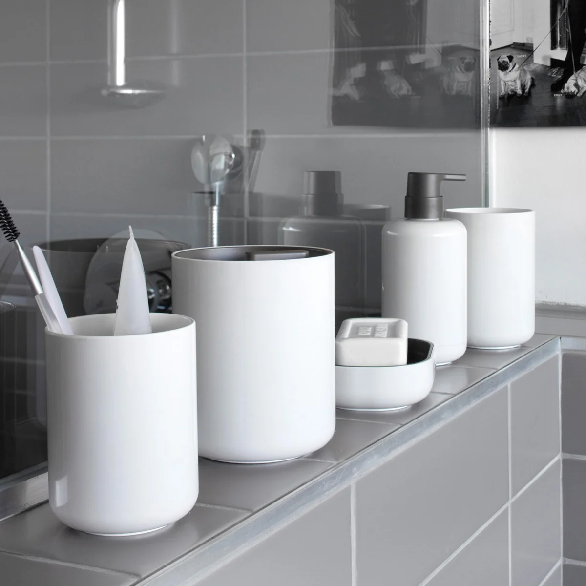The Lunar lid box from Authentics combines thick-walled, high-gloss ABS plastic with a coloured, matt insert. Its sober, simple form emphasises its functionality: whether for cotton pads, cotton buds, hair accessories or hygiene products, the lidded box stores all items discreetly and in a modern way. Available in a range of colours, the tin blends in with a variety of bathroom styles. It also works wonderfully on the cosmetic table.