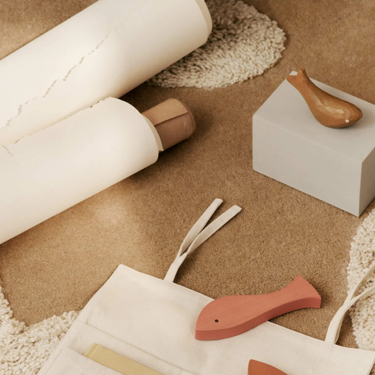 The Harbour storage box is intricately handcrafted from 100% FSC®-certified aspen wood and offers reliable protection for your beloved belongings. The hand-carved handle, inspired by the organic beauty of seaweed, adds an original, abstract touch. The painted strokes of color add depth and character, giving the box a unique artistic flair that will enhance any nursery ambiance.
