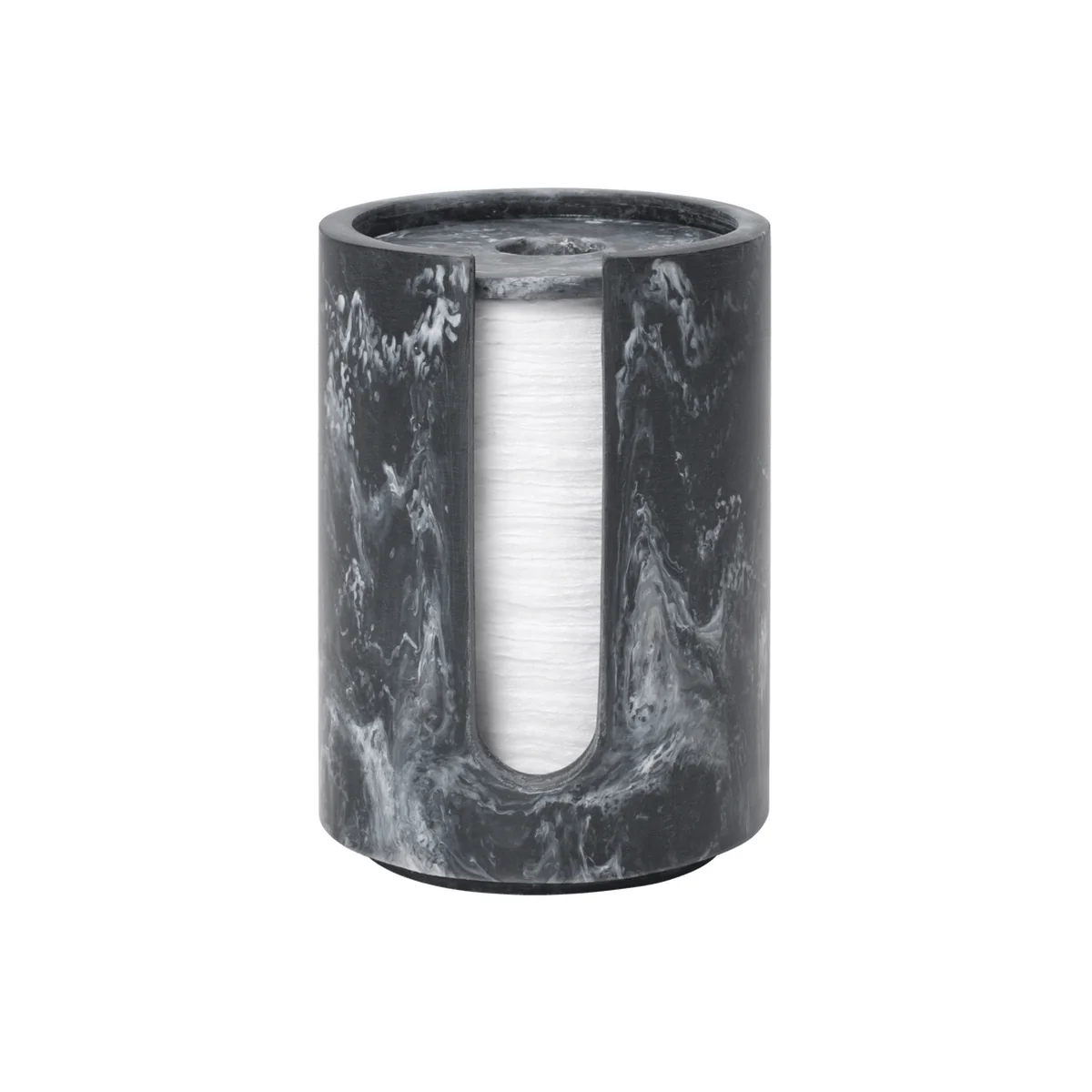 The Mist cotton pad container from Ferm Living combines stylish aesthetics with functional storage. Made from durable, marbled resin, it makes an elegant statement in the bathroom. The clear, round shape and stackable design fit seamlessly into the minimalist look of the Mist -series. Its compact size ensures tidy and decorative storage of cotton pads.