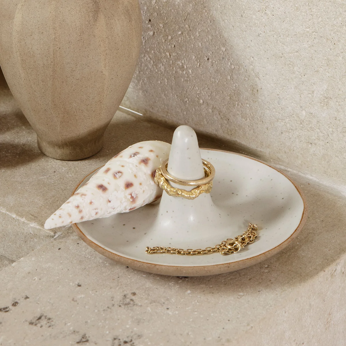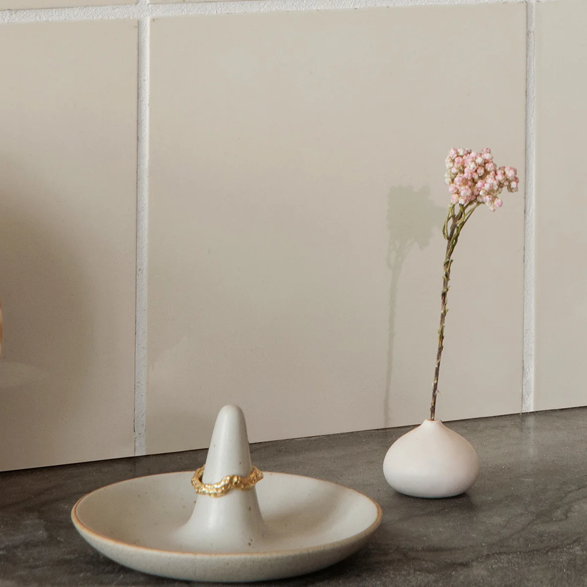 Order is half the battle. This also applies to the Ring jewelry storage by Danish company Ferm Living, which makes storing rings, necklaces and bracelets safely and easily a breeze. Ring is cone-shaped and is made of unfinished porcelain covered with a matte, almost milky glaze. The inside is glazed while the outside of the bowl is unglazed.