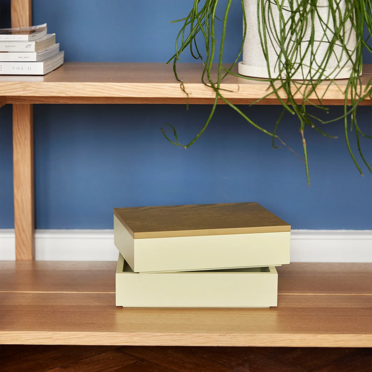 The storage box with lid is a versatile helper for the whole home. The chic box looks particularly good in the office: the individual modules can be stacked and closed with a lid as desired. Cables, papers, small everyday objects or jewellery fit in perfectly. Thanks to the lid, the contents can be hidden from uninvited glances. Several of the stacked boxes make a practical shelf for organising on the desk.