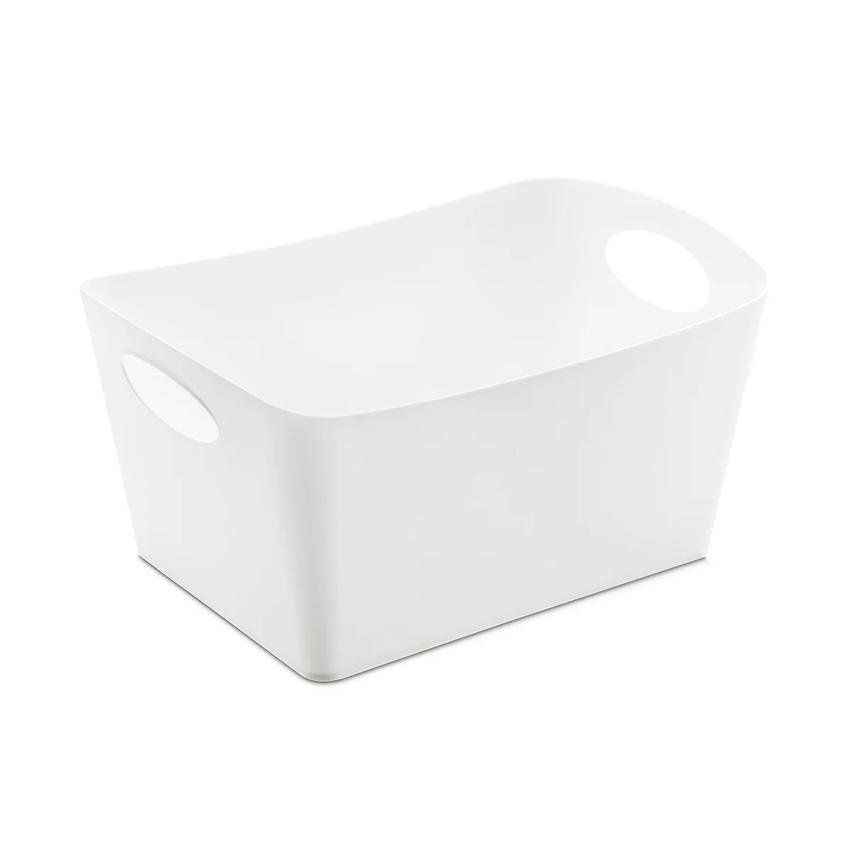 The recycled Boxxx storage boxes from Koziol bring order to your own four walls. Depending on their size, the boxes are suitable for storing cosmetics and hair care products in the bathroom, for sorting laundry, as a practical laundry basket or alternatively for collecting used glass. The possible uses are many and varied. The organizing aids are also very practical. In sizes S, M and L, two of the boxes always fit into the next larger version. The smaller versions also fit perfectly in cupboards or on shelves thanks to their rectangular shape. The boxes from Koziol can be easily removed and transported using the grip holes.