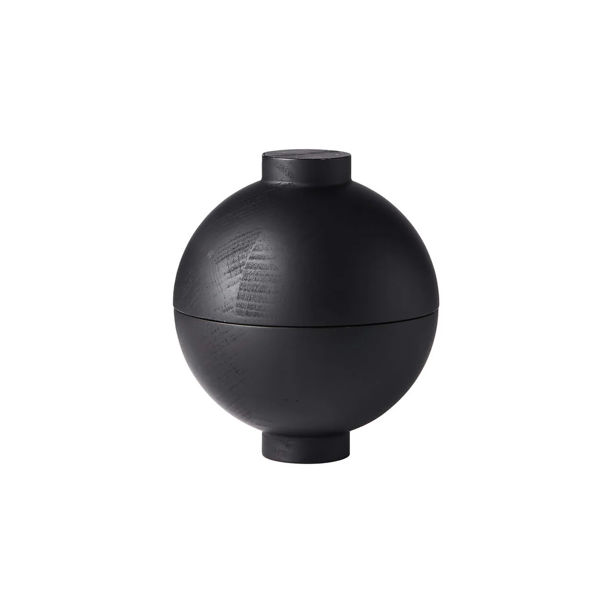 The Wooden Sphere storage from Kristina Dam Studio is a practical decoration for really any ambience: Two organically curved bowls turned from solid wood combine to form a perfect sphere. The bowls and sphere can be used for a variety of purposes: As a bowl for makeup and jewelry in the bedroom, for accessories in the bathroom, in the living room as decoration, on the dining table for serving snacks, in the kitchen for storing spices and more- the possibilities are almost endless!
