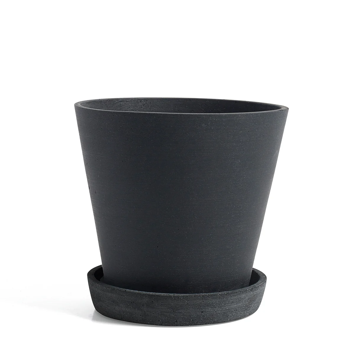 The flower pot with saucer from HAY is uncompromisingly pragmatic. With its clear shape it fits everywhere where a practical flower pot is needed.