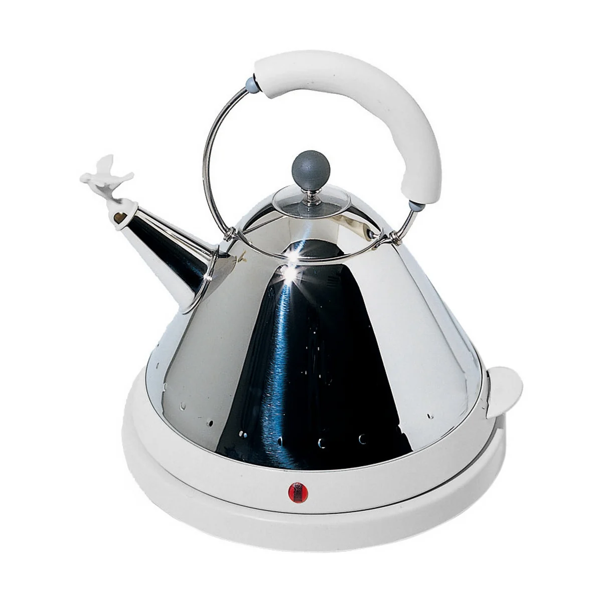 In 1984 Michael Graves designed the legendary "Bird Kettle". It was the first product which was designed by an American designer for Alessi. The MG32 kettle is a modern copy of the very same bird flute kettle - with the difference that it heats up the water electrically and is not tied to a cooker.