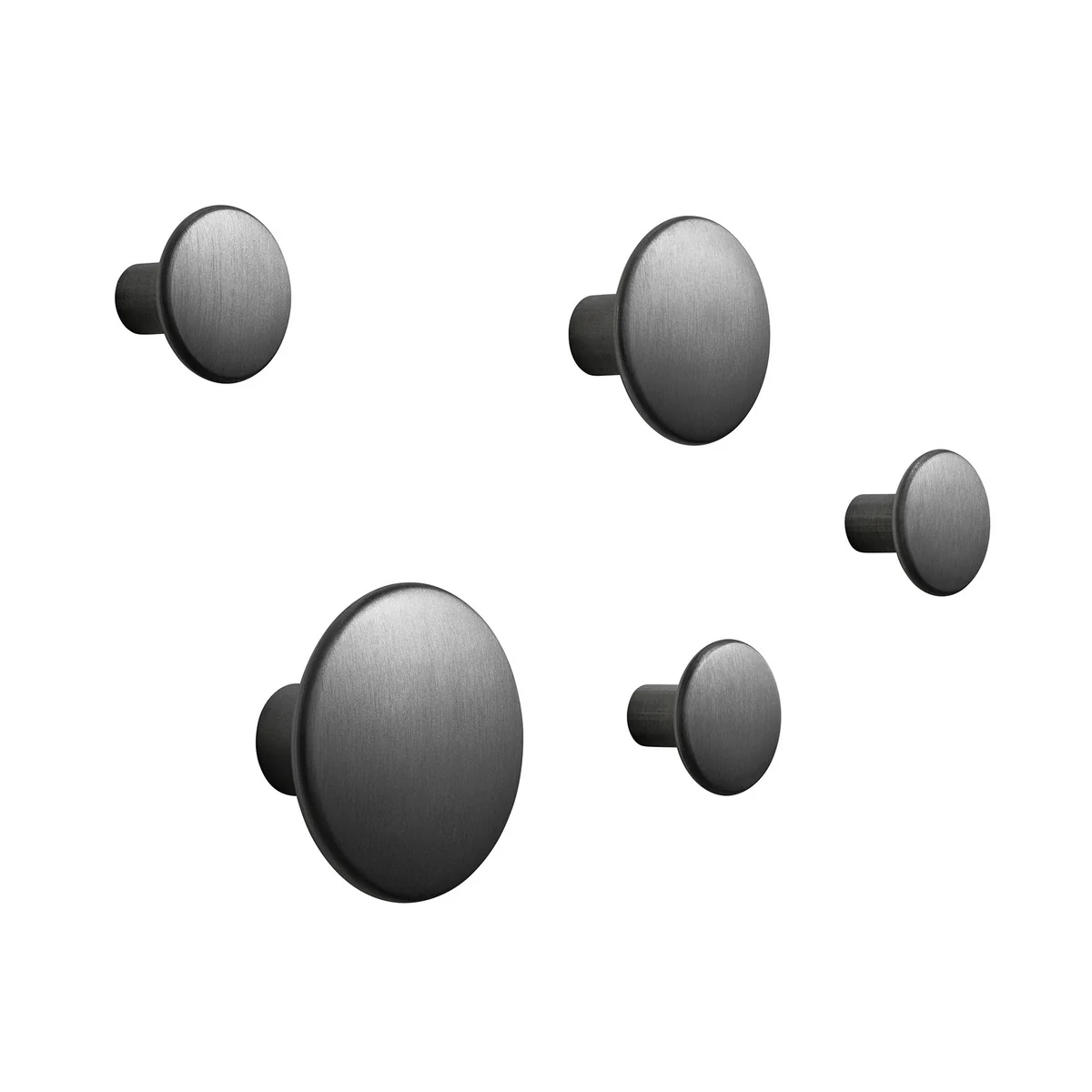 The wall hooks "The Dots Metal" in Muuto's 5-piece set are part of the Dots collection of the Norwegian design duo Tveit & Tornøe, which is continued by Lars Tornøe. The family of wall hooks of various sizes is an enrichment for any corridor, kitchen or bedroom wall.
