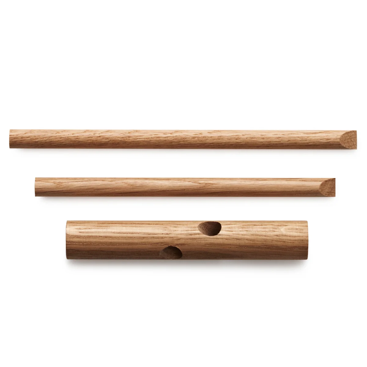 The Hook Sticks gives clear architectural indications through its simple and clear design. Benoît Deneufbourg is fascinated by triangular roof constructions and crossbeams that create angles, shapes and space. And this is exactly what the designer has chosen for the hook Sticks inspired.