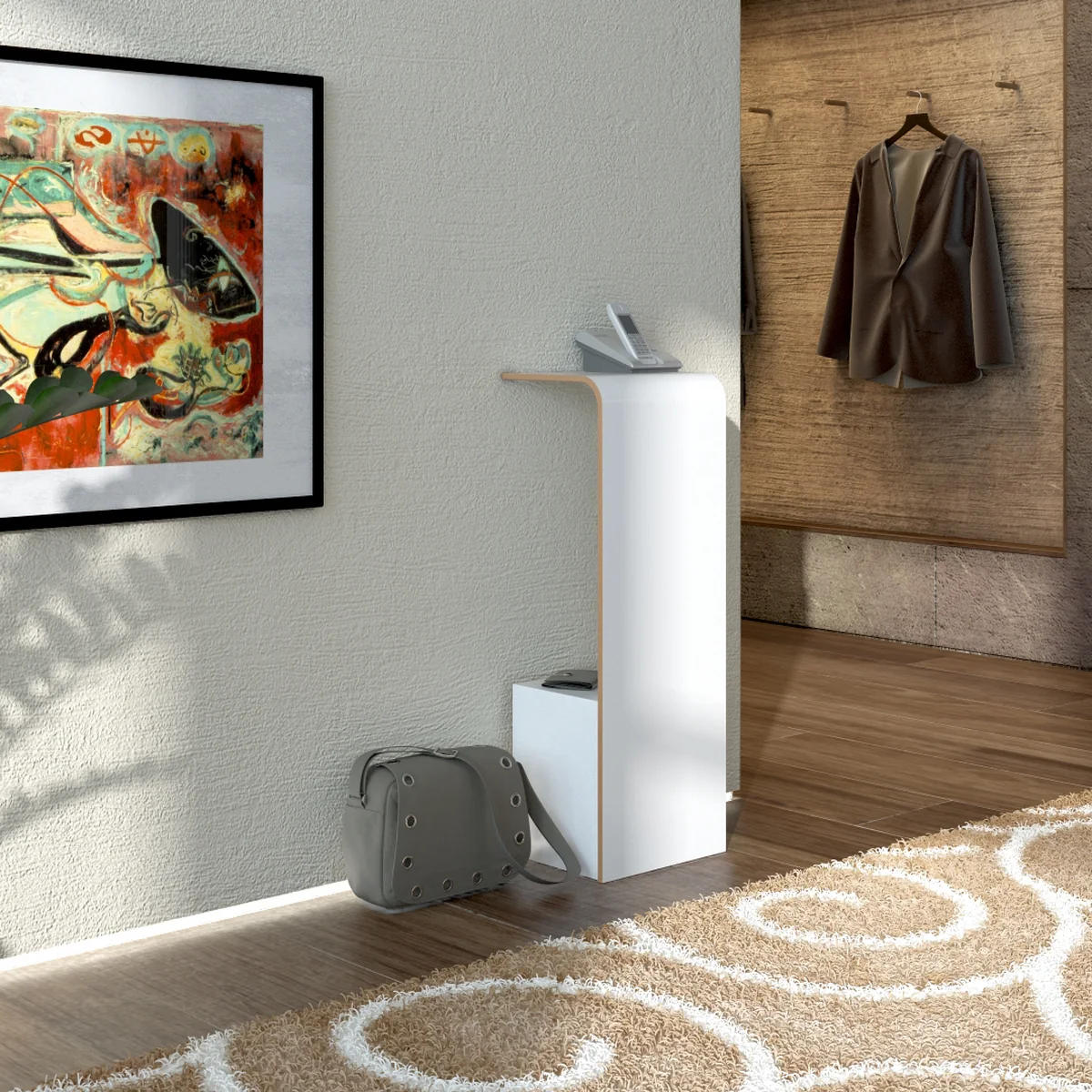 The practical console Fon by Tojo is a shapely storage for phone, notes or other small things that are searched for daily. Practical: Tojo Fon has an integrated container for cables and plugs, which can be stowed away invisibly but at the same time easily accessible. Tojo Fon also offers plenty of storage space for books or the like. The console is stable, light and stable and does not require any drill holes on the wall. The phone's cables can be routed along the apron or the wall into the small box.