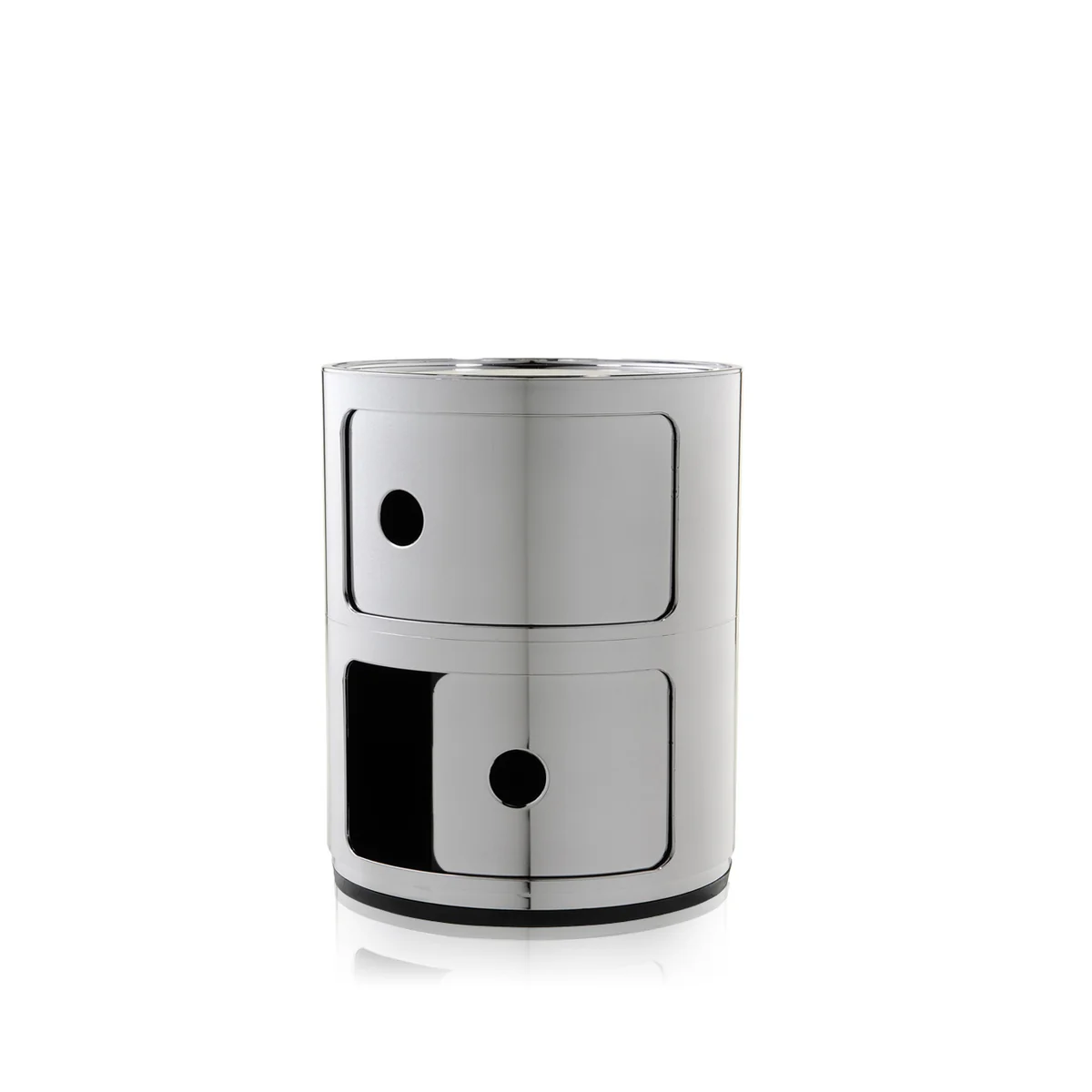 Componibili is available in round and square editions and they are also available with castors. Flexible, functional, practical: The Componibili elements are a classic and have 30 years of tradition, remaining modern because of conciseness and innovation. Being part of permanent exhibitions of the Museum of Modern Art in New York and of the Centre George Pompidou in Paris, these systems are considered timeless classics.