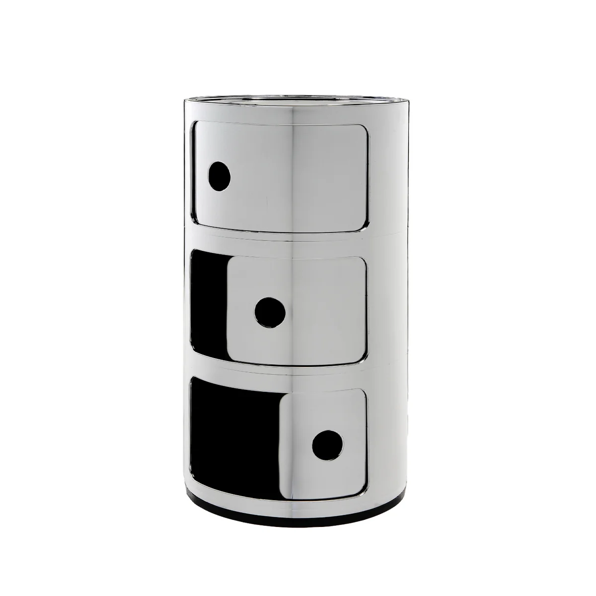Componibili is available in round and square editions and they are also available with castors. Flexible, functional, practical: The Componibili elements are a classic and have 30 years of tradition, remaining modern because of conciseness and innovation. Being part of permanent exhibitions of the Museum of Modern Art in New York and of the Centre George Pompidou in Paris, these systems are considered timeless classics.