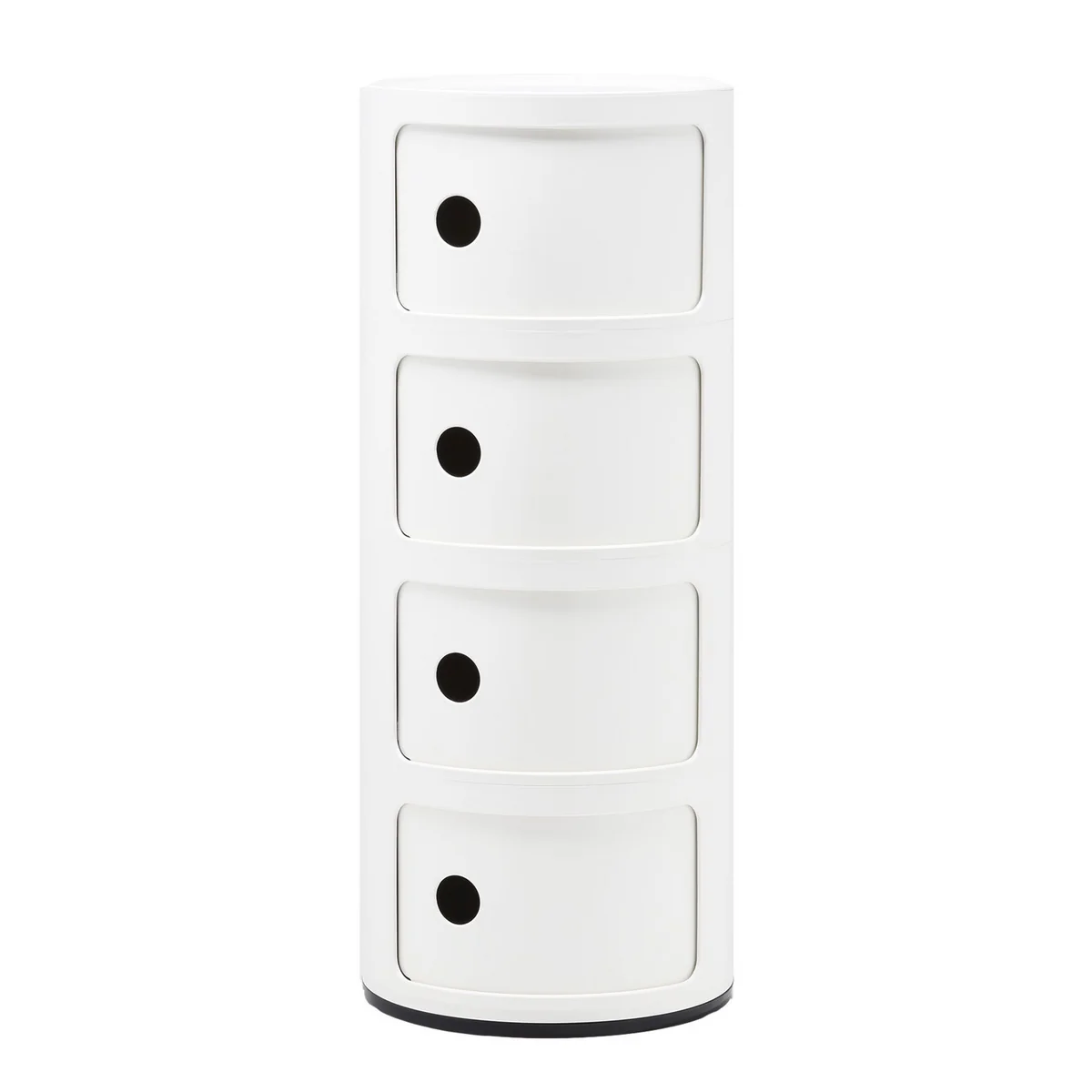 In 2017, Kartell introduced the new pre-configured Componibili 4985 unit with four compartments and a diameter of 32 cm - a new size and new colors! The basic design created in 1969 by Anna Castelli Ferrieri still convinces with its popping retro look, now with muted colors that give it a timeless quality.
