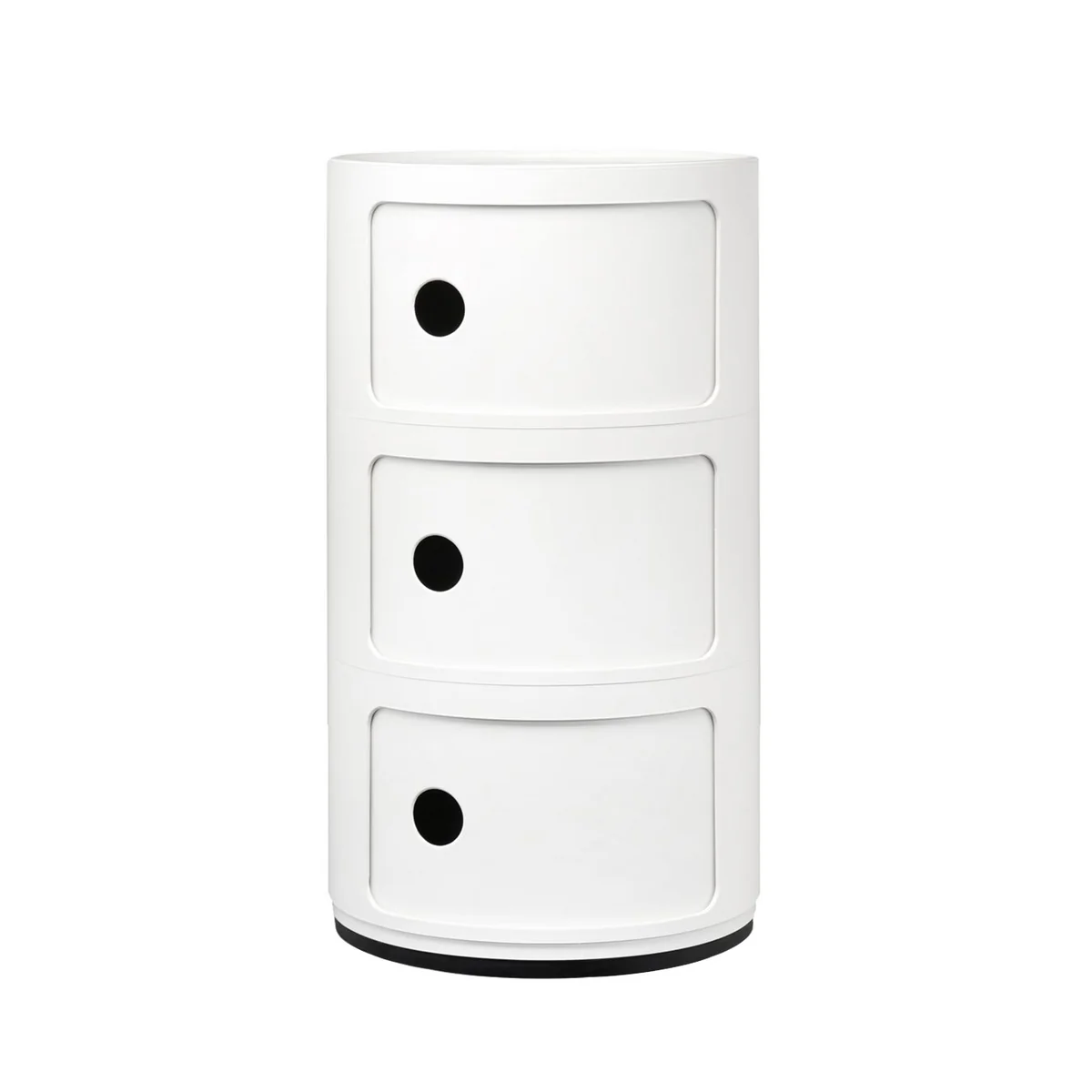 The Componibili are available in round and square versions and can also be supplied on castors. Flexible, functional, practical: the Componibili are a design classic with a thirty-year tradition that has gained much recognition for the conciseness and innovation of its design and has long since rolled into the permanent exhibition of the Museum of Modern Art in New York and the Centre George Pompidou in Paris.
