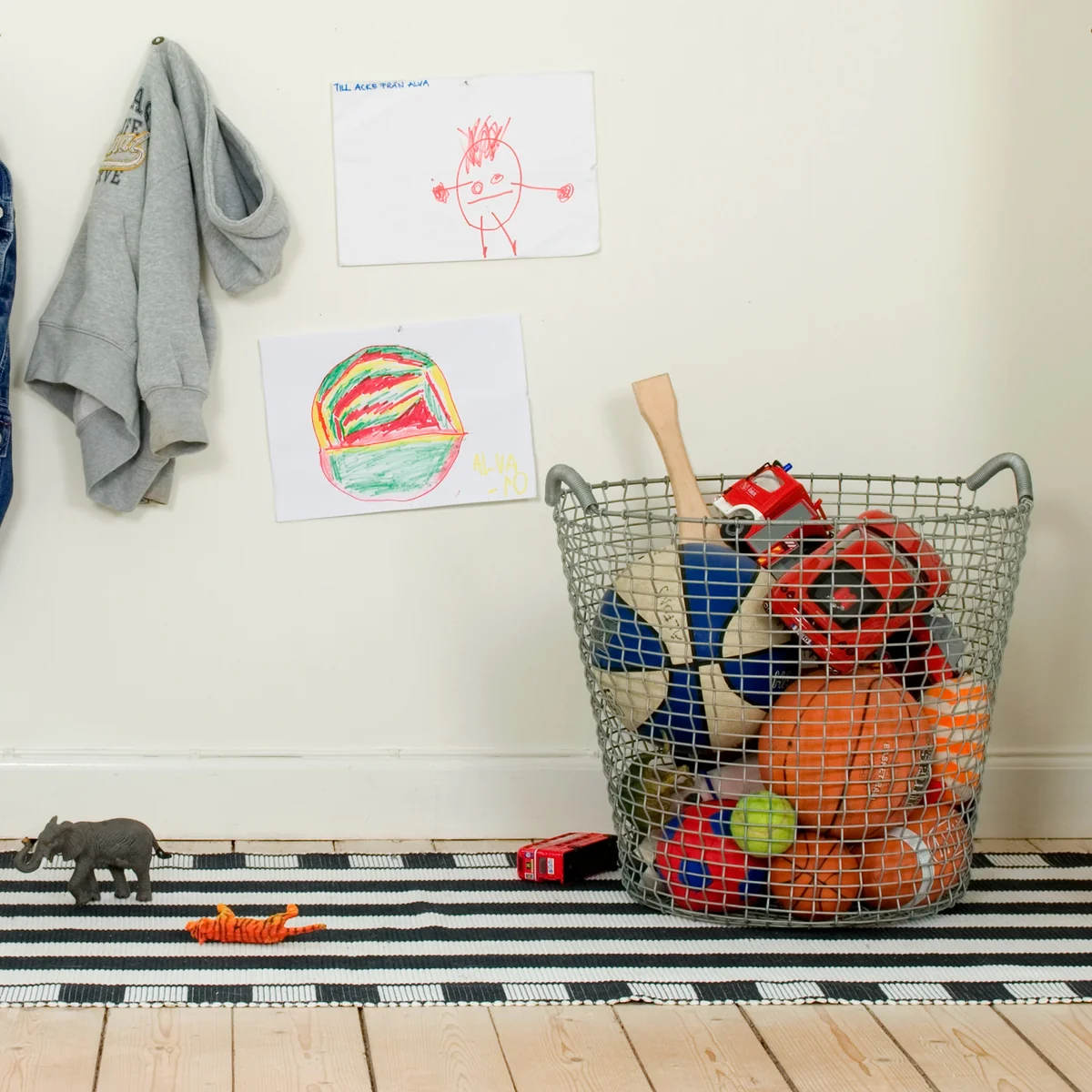 The Classic 65 wire basket by Korbo with two handles and a capacity of 65 litres is a handy storage basket.. Since its load is equally balanced by the two handles, also heavy things are easy to transport. It is therefore perfectly adapted for every possible storage purpose: for potatoes, balls, gloves, as paper basket or for newspapers – it doesn’t matter where you place it – it will fulfill your demands for a long time. No matter whether inside the house or outside.