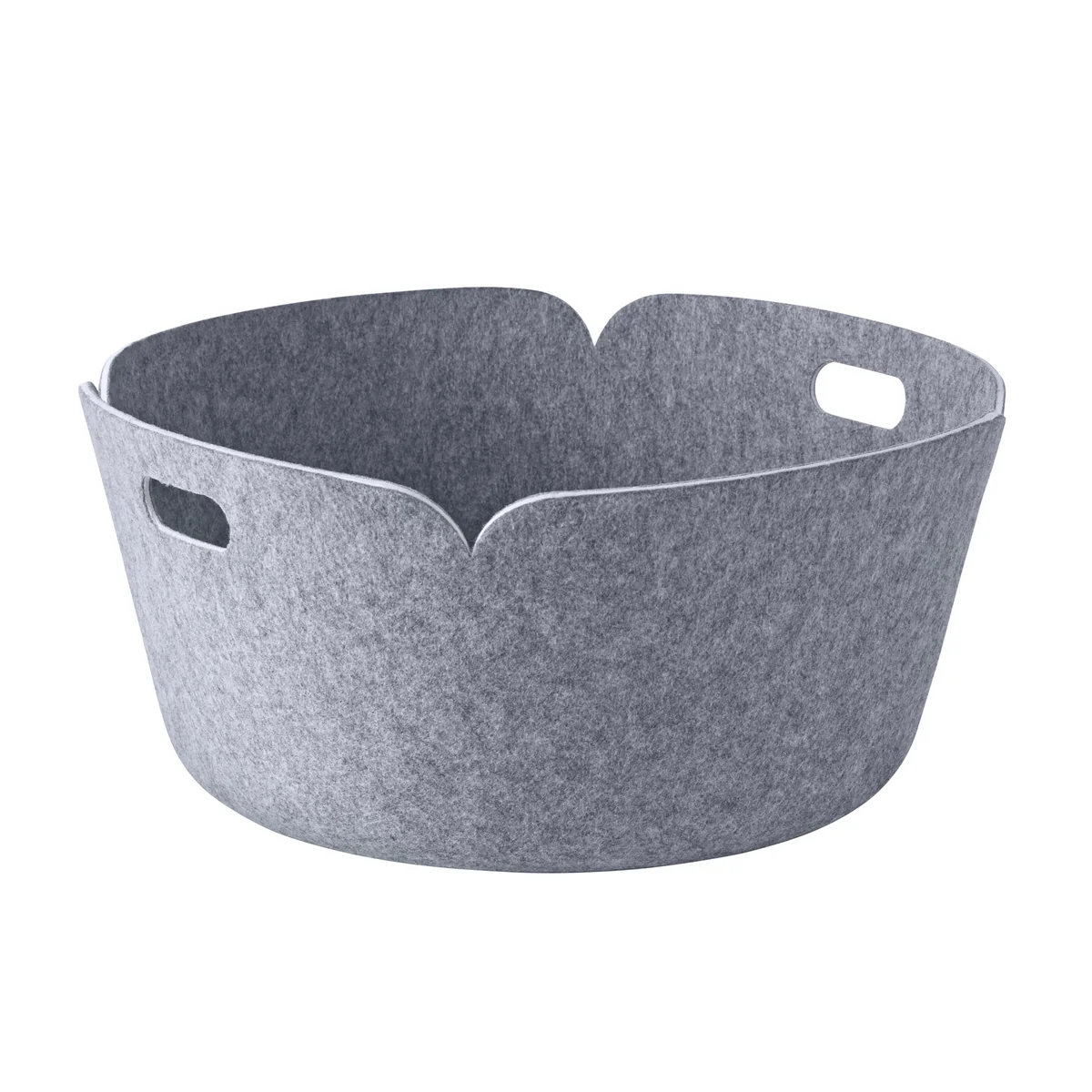 The special thing about Restore is its inconspicuous character. The basket is made of PET - the basis for which are recycled plastic bottles. Finnish designer Mika Tolvanen gave this material a natural look by making it look like felt. Due to this appearance of the surface and the round shapes the Restore Tray looks natural, friendly and pleasantly unobtrusive.