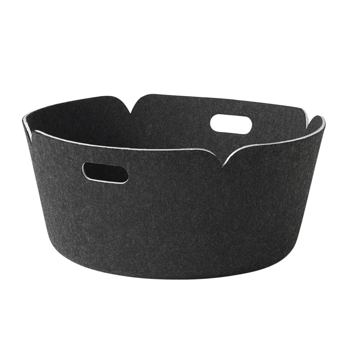 The special thing about Restore is its inconspicuous character. The basket is made of PET - the basis for which are recycled plastic bottles. Finnish designer Mika Tolvanen gave this material a natural look by making it look like felt. Due to this appearance of the surface and the round shapes the Restore Tray looks natural, friendly and pleasantly unobtrusive.