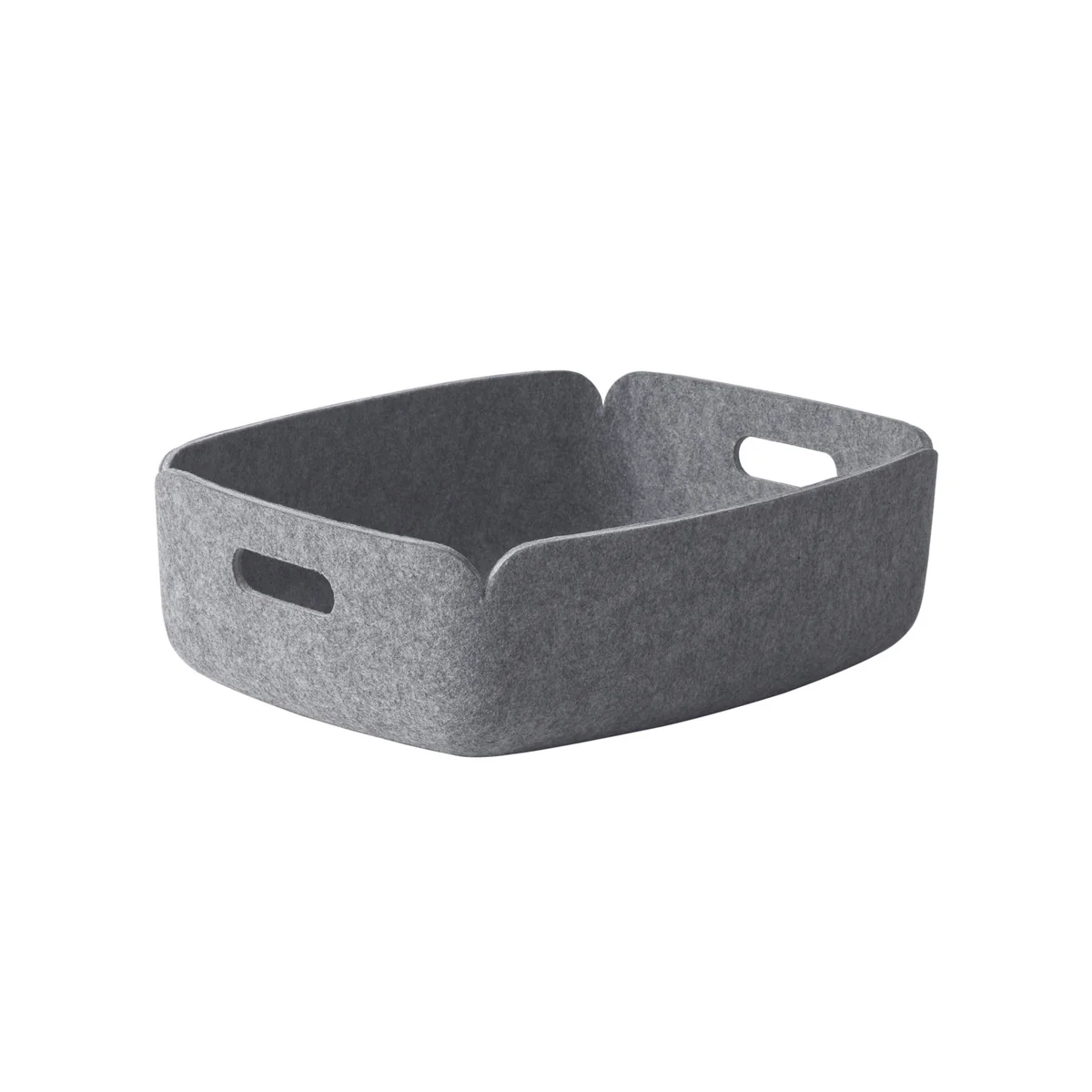 The special thing about Restore is its unobtrusive character. The basket is made of PET - based on recycled plastic bottles. Finnish designer Mika Tolvanen gave this material a natural look by designing it like felt. This surface appearance and the round shapes give the tray a natural, friendly and Restore tray looks natural, friendly and pleasantly unobtrusive.