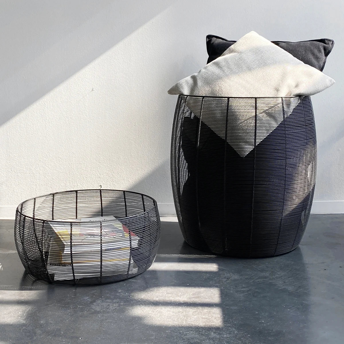 Thus, the high version of the basket can be easily turned around and thus placed as a light storage table in the living room.
