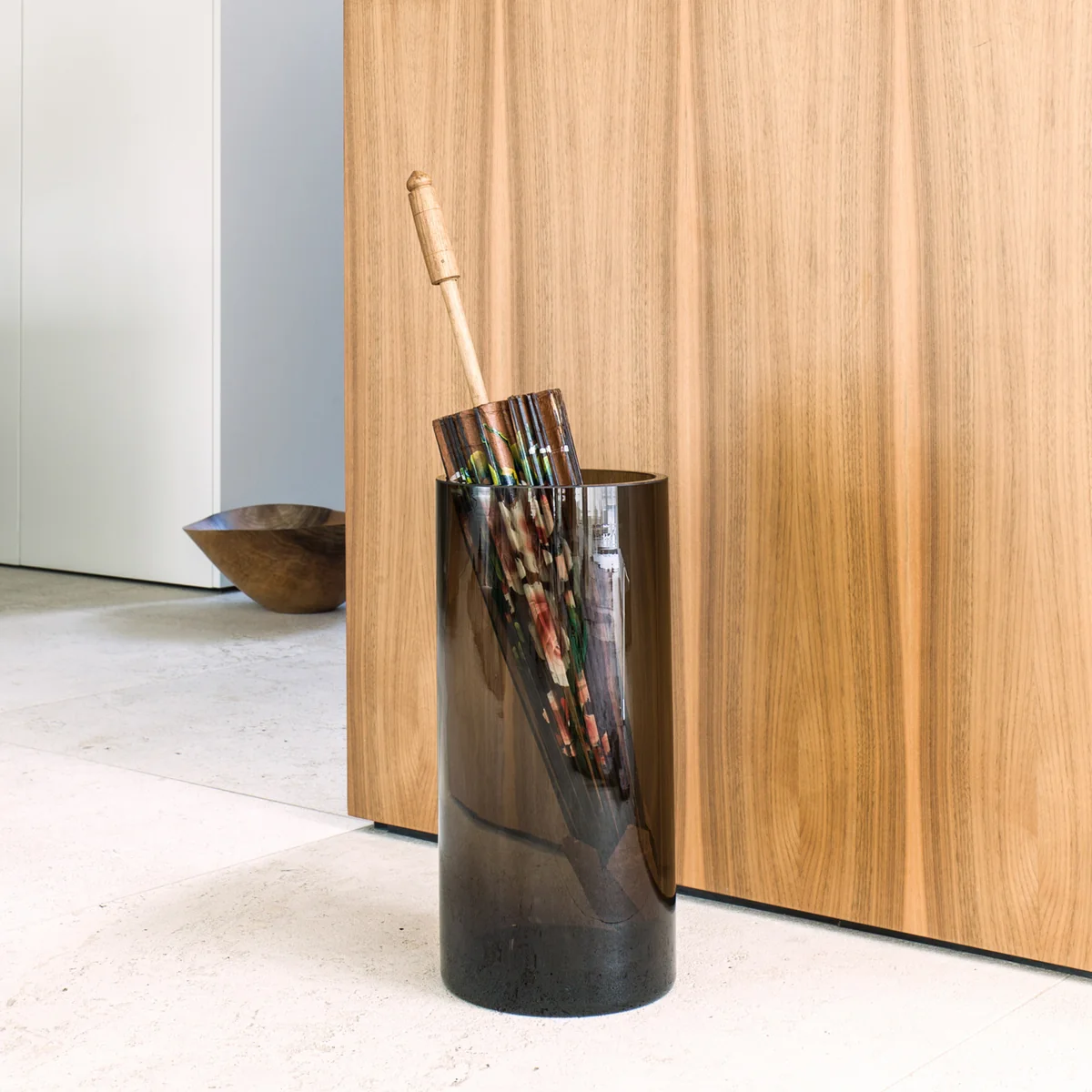 The umbrella stand 0510 by Schönbuch is a cylinder-shaped stand made of mouth-blown glass for umbrellas. It can also just as easily be used as a stylish floor vase for flowers. Right next to the coat rack, the shoe cabinet, or the front door, the umbrella stand becomes a timeless and elegant design object.