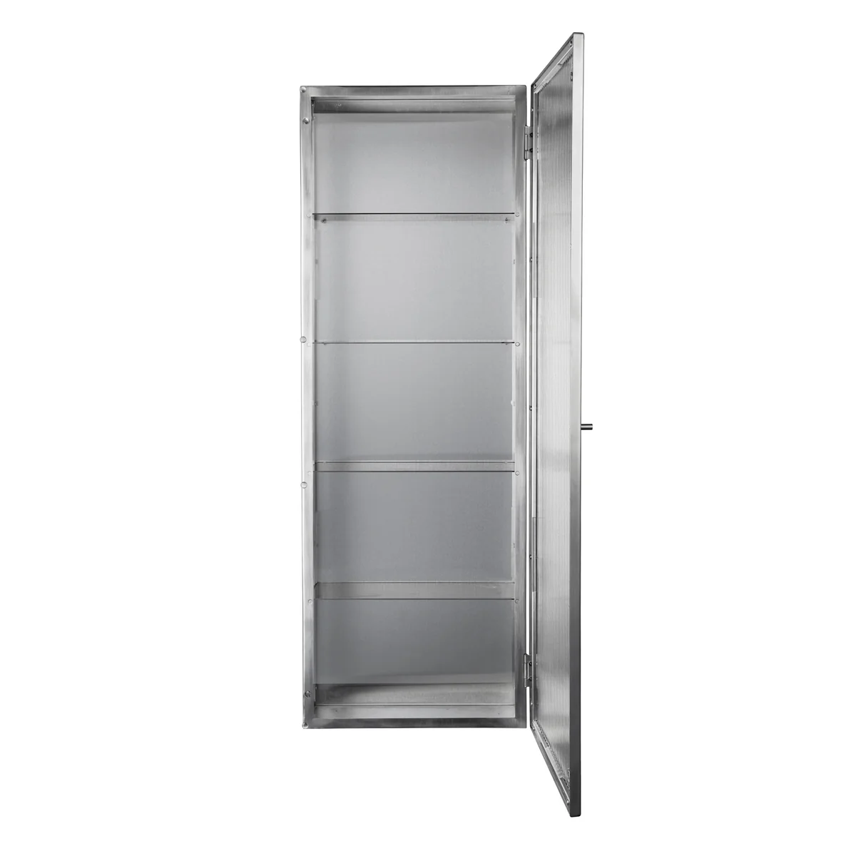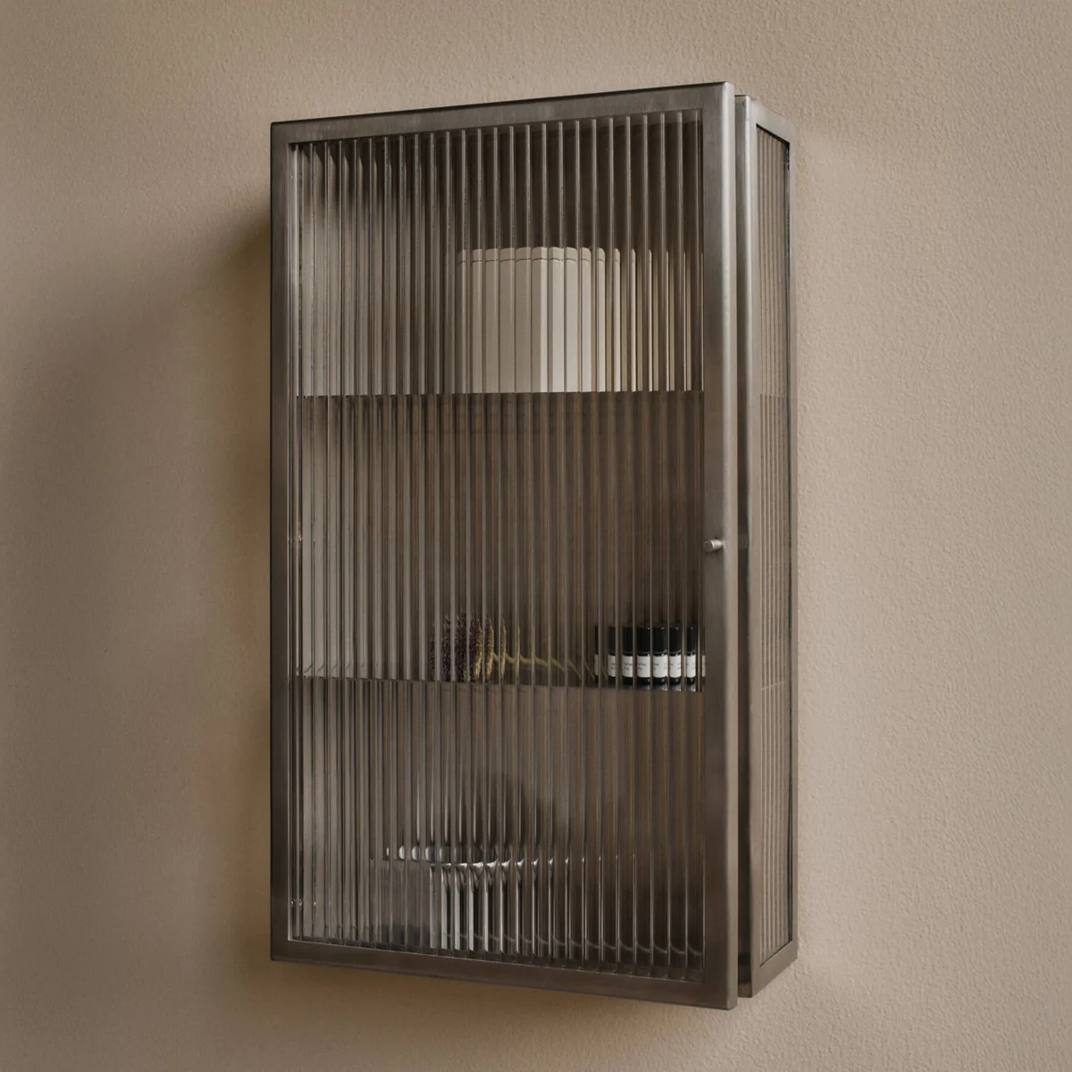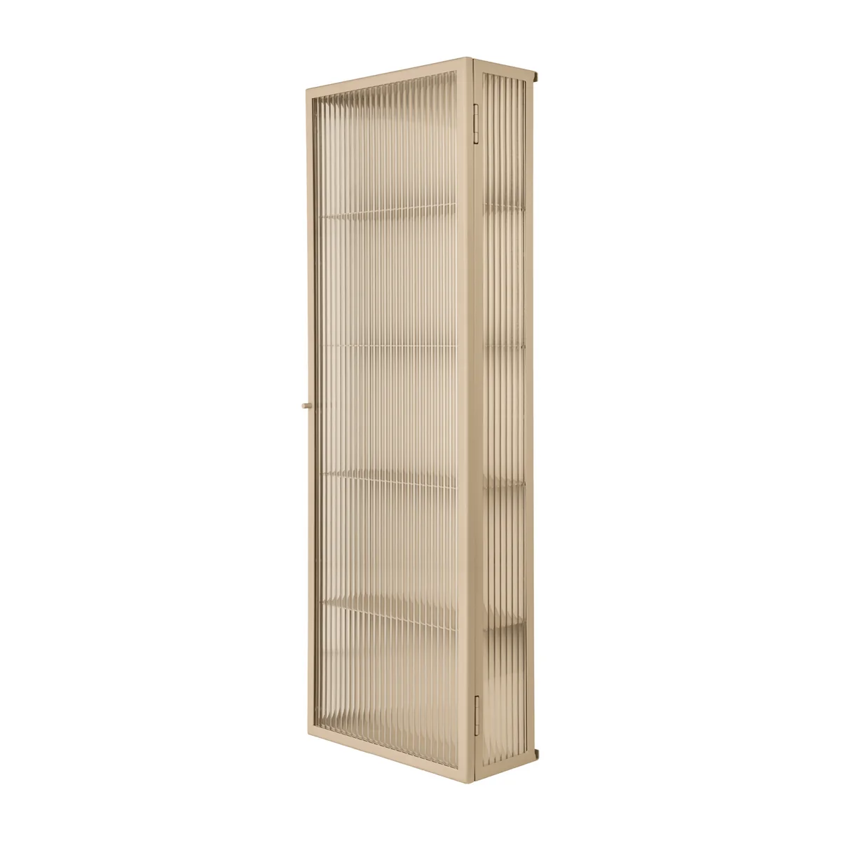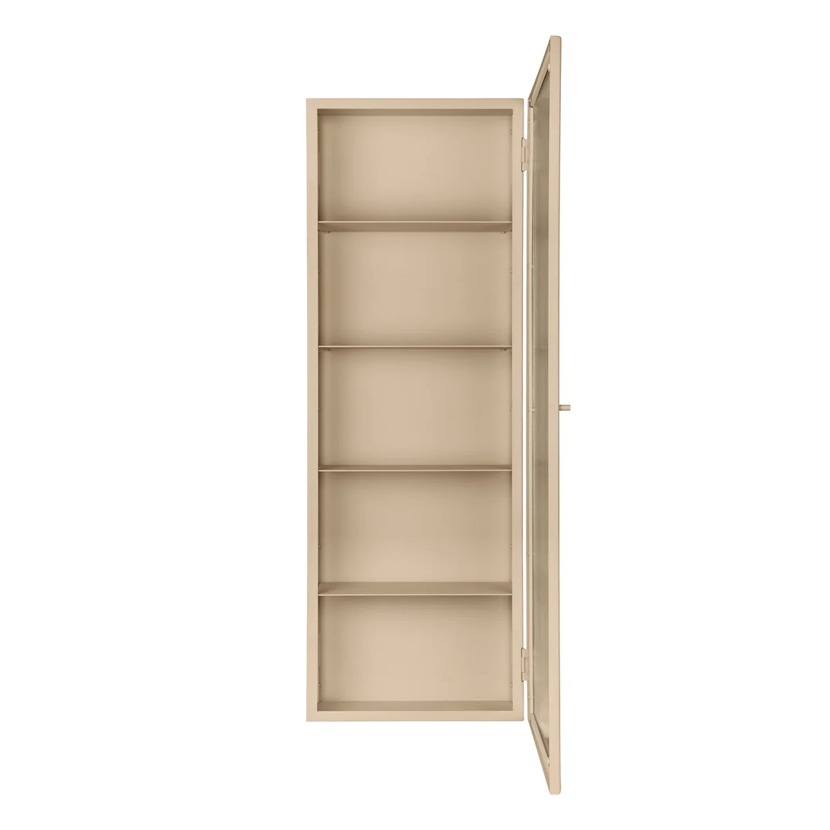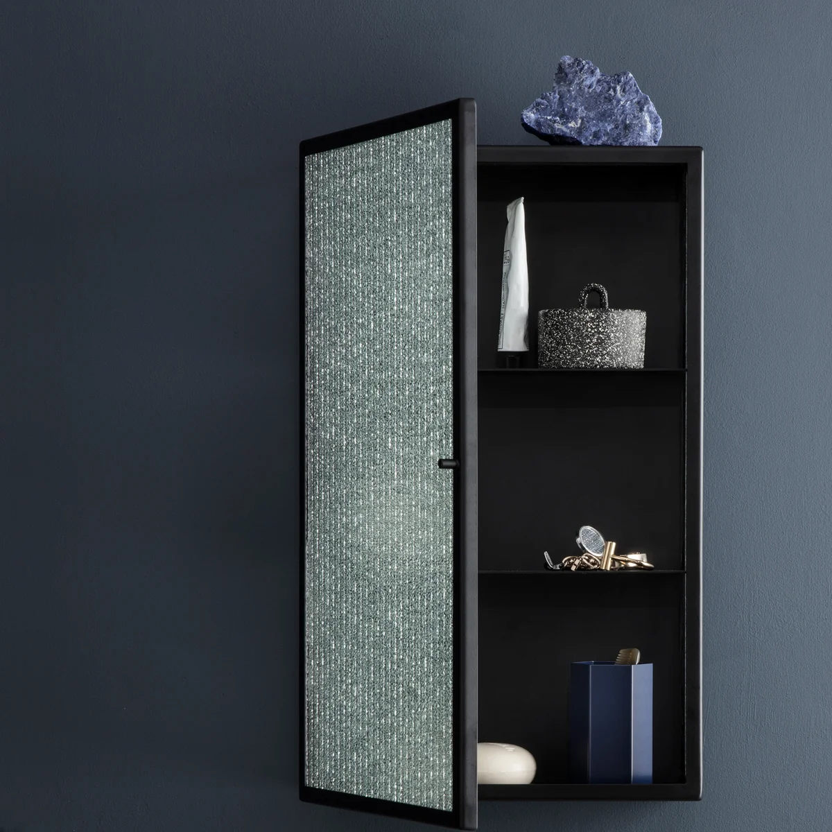 The interplay of wired glass and metal blends strikingly into any interior and yet appears light thanks to the semi-transparent glass. The wall cabinet with its industrial character is suitable for the bathroom as well as the kitchen or dining room. It provides a stylish place for cosmetics and towels as well as spices, crockery and glasses.