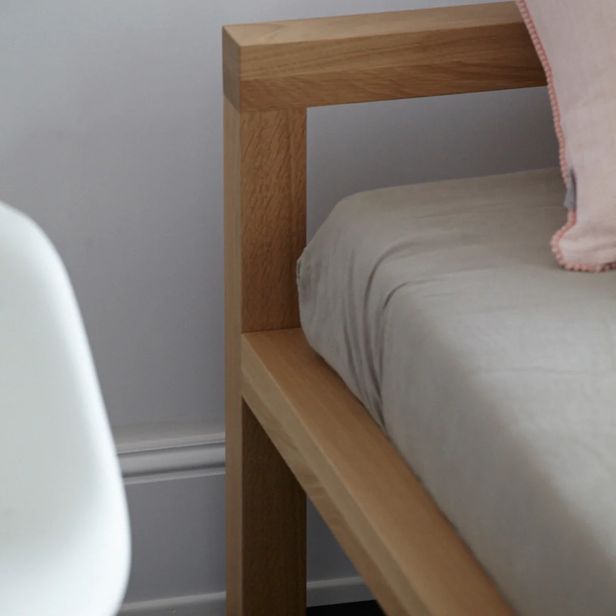 Hans Hansen manufactures the Pure bed, like all its products, exclusively in Germany. Made from solid oak, it adds a touch of naturalness to the ambience. A steel strut in the base supports the slatted frame and also provides extra stability.