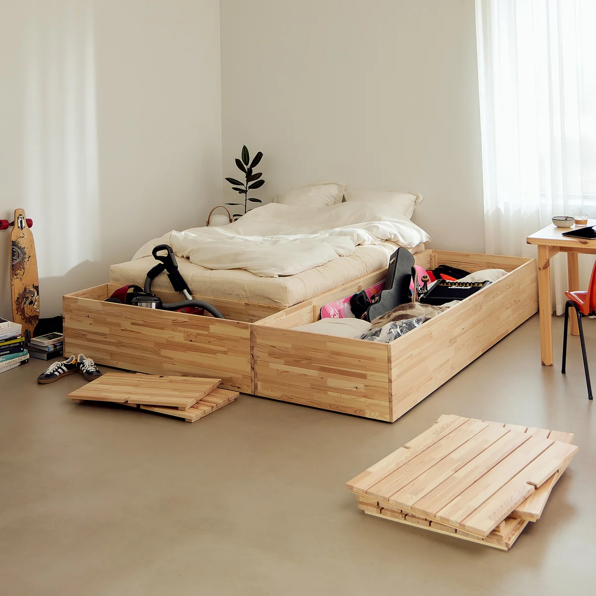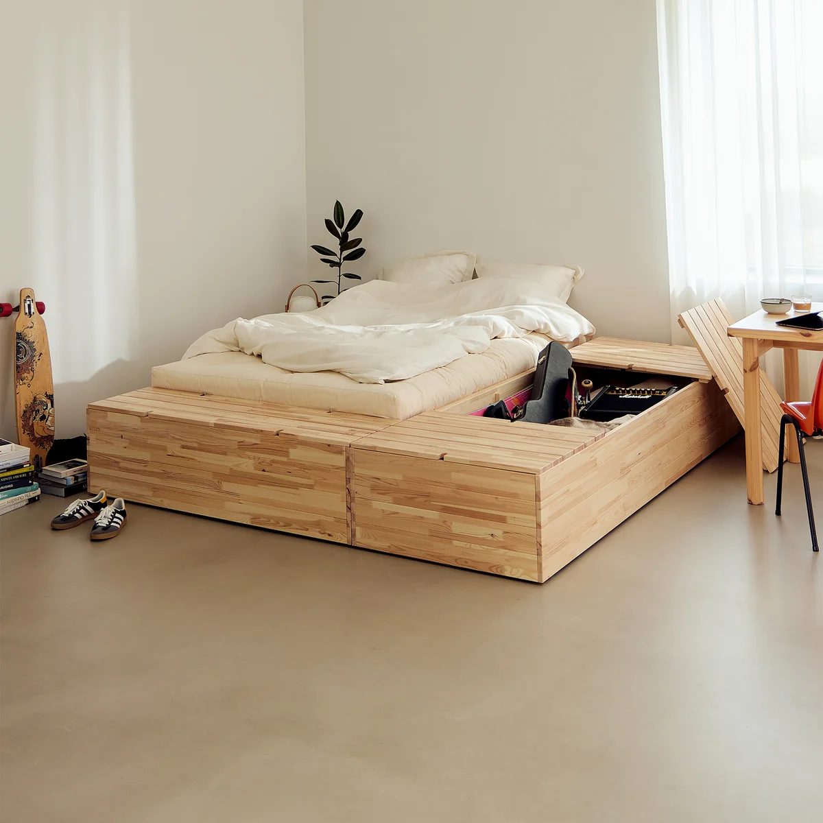The Basement bed from Karup Design, designed by C.F. Møller Architects, offers the perfect combination of sleeping space and storage space. This clever design is particularly ideal for smaller homes where every square meter counts. There is plenty of storage space under the bed to store all the things you want to keep out of sight but still within reach. The version with storage bench serves both as a seat and as additional storage space, making the bed a versatile, multifunctional piece of furniture. The Basement bed is not only practical, but also creates a cozy atmosphere that transforms your bedroom into a meeting place for friends - ideal for relaxing.