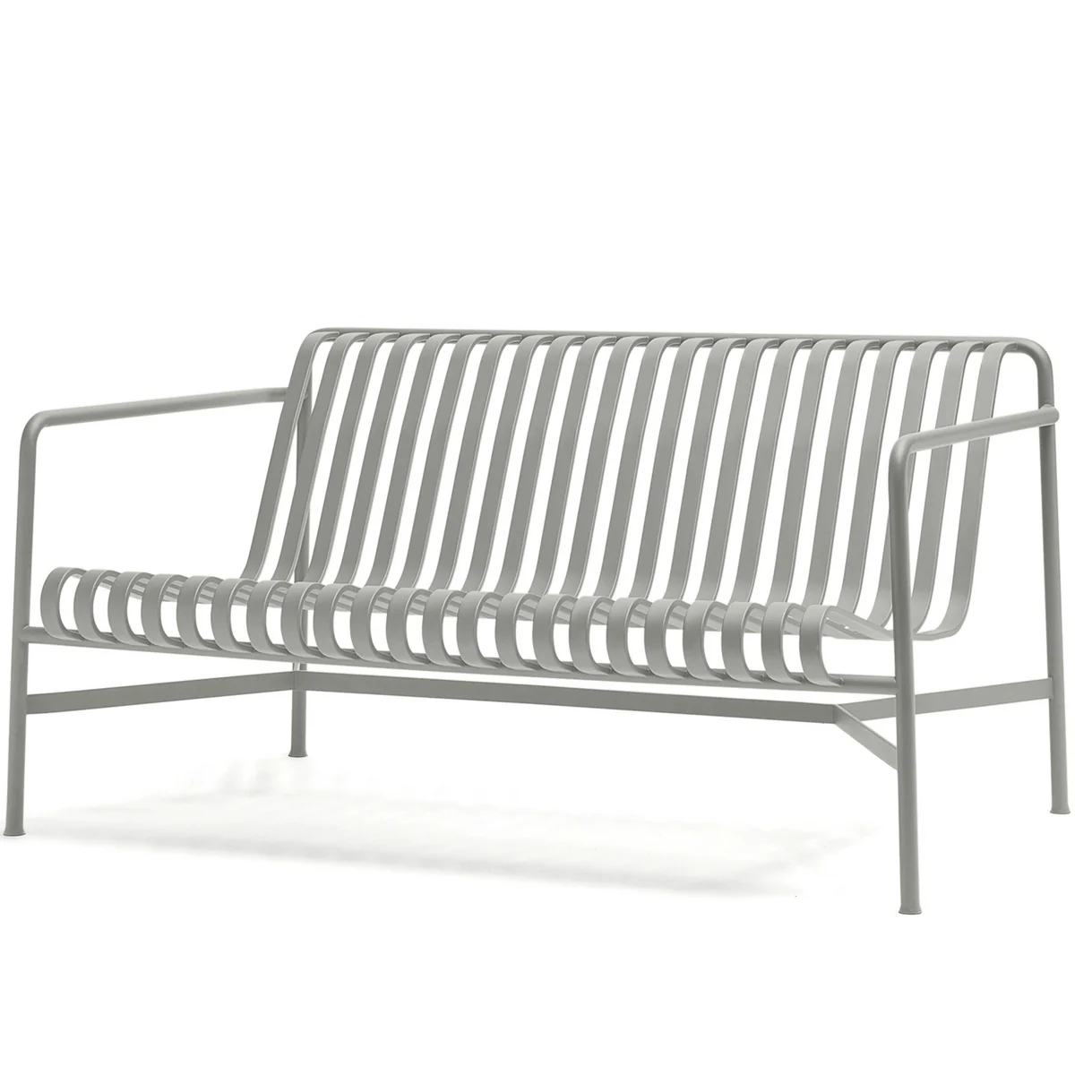 With the Palissade collection, brothers Ronan and Erwan Bouroullec have created a range of garden furniture that is ideal for outdoor use. Like all the other furniture in the series, the sofa is made of a grooved surface of powder-coated steel slats. The advantage of this is that rainwater can easily run off through the grooves and does not collect in a puddle.
