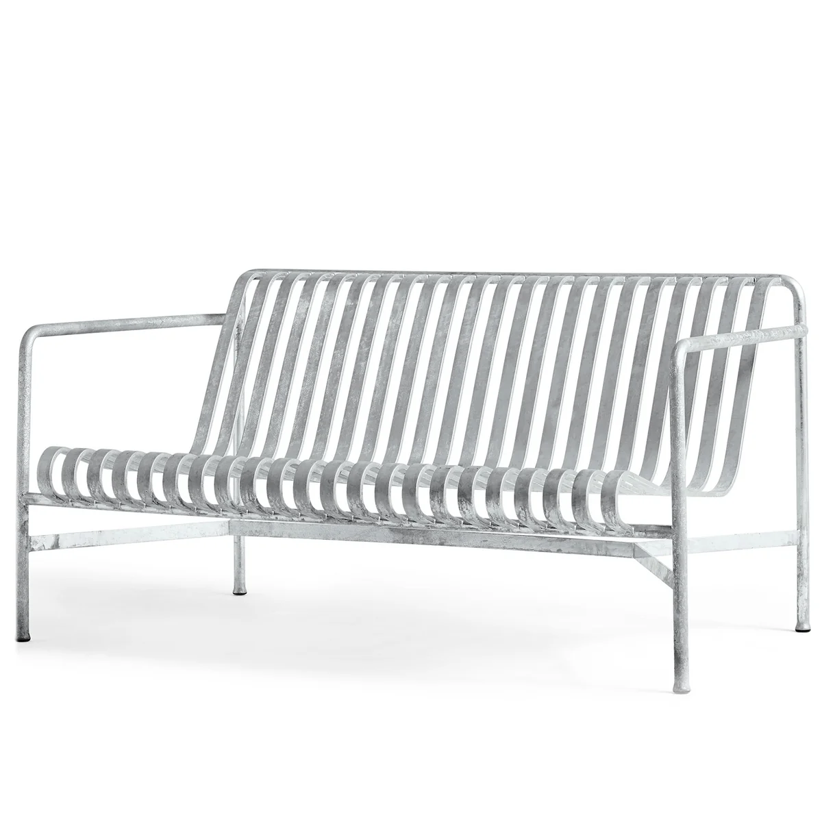 With the Palissade collection, brothers Ronan and Erwan Bouroullec have created a range of garden furniture that is ideal for outdoor use. Like all the other furniture in the series, the sofa is made of a grooved surface of powder-coated steel slats. The advantage of this is that rainwater can easily run off through the grooves and does not collect in a puddle.