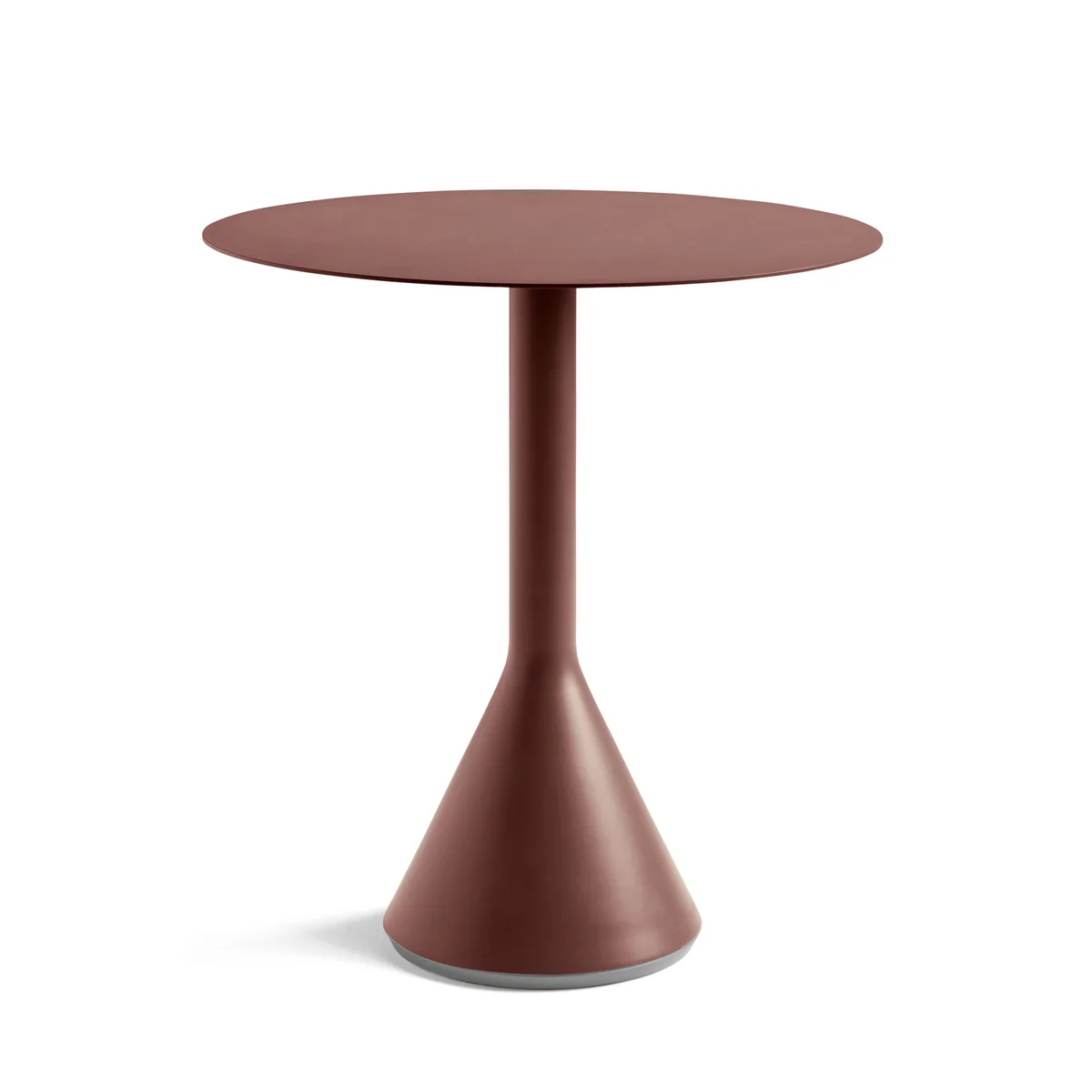 The Palissade Cone bistro table is a new addition to the outdoor Palissade series from HAY and is characterized by its cone-shaped base, which is filled with concrete to ensure stability. Despite its robust properties, the base is by no means bulky, but rather has a graphic touch in combination with the thin table top, which can also be seen in the rest of the series designed by Ronan & Erwan Bouroullec.