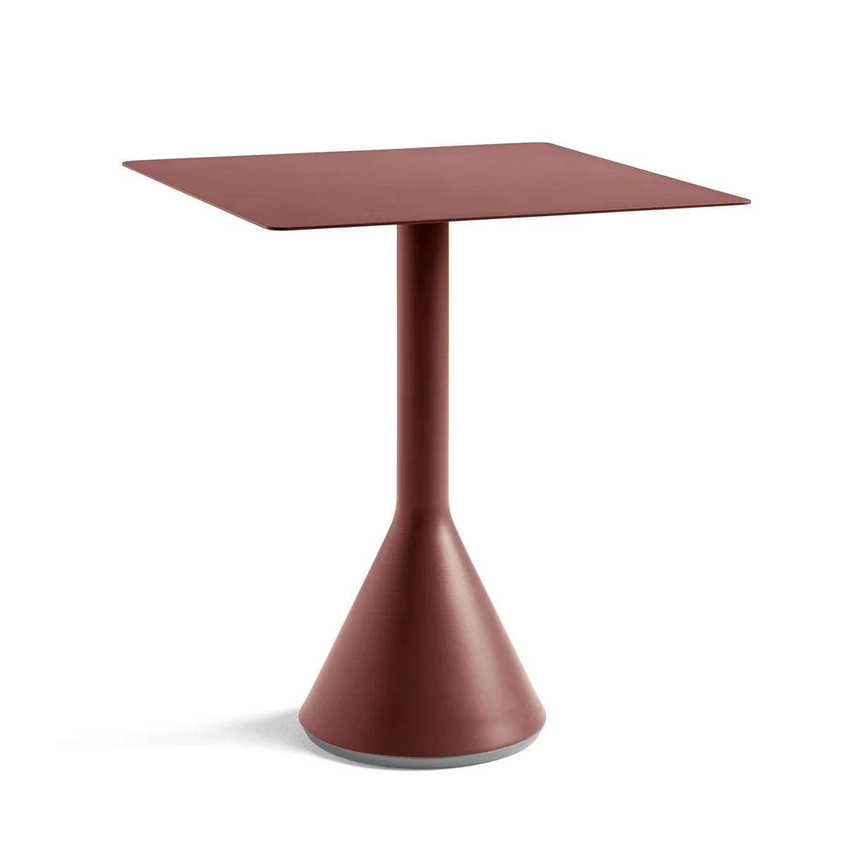 The Palissade Cone bistro table is a new addition to the outdoor Palissade series from HAY and is characterized by its cone-shaped base, which is filled with concrete to ensure stability. Despite its robust properties, the base is by no means bulky, but rather has a graphic touch in combination with the thin table top, which can also be seen in the rest of the series designed by Ronan & Erwan Bouroullec.