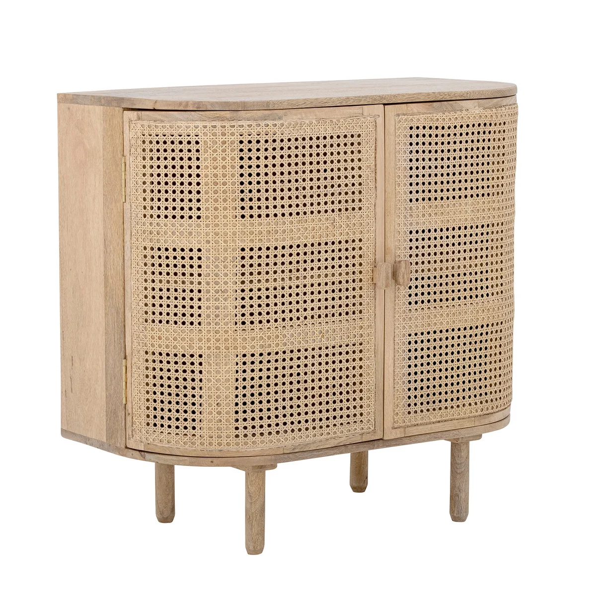 The Bandol Cabinet from Bloomingville 's Creative Collection is crafted of mango wood in a beautiful arched design for a soft and organic expression. The cabinet doors are decorated with sugar cane for a transparent and homely expression.