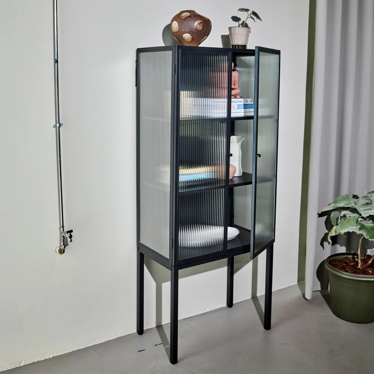 The Cabin cabinet from House Doctor combines striking design with functional storage. Its robust iron frame ensures stability and gives the piece of furniture a clear, expressive presence in the room.