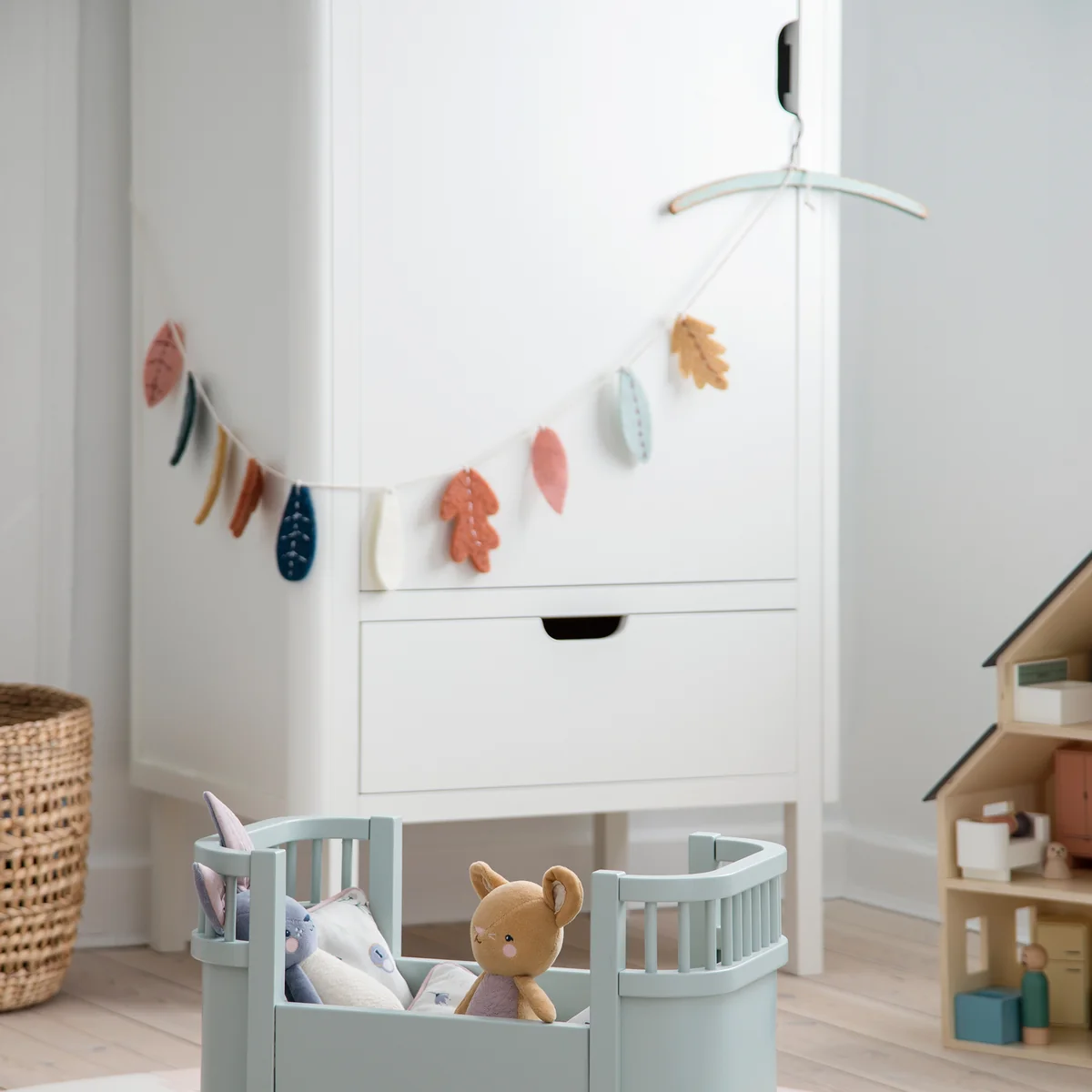 Additional features such as drawer dampers, rounded corners and screwless height-adjustable rods and shelves make this wardrobe from Sebra the perfect piece of furniture for every child's room.