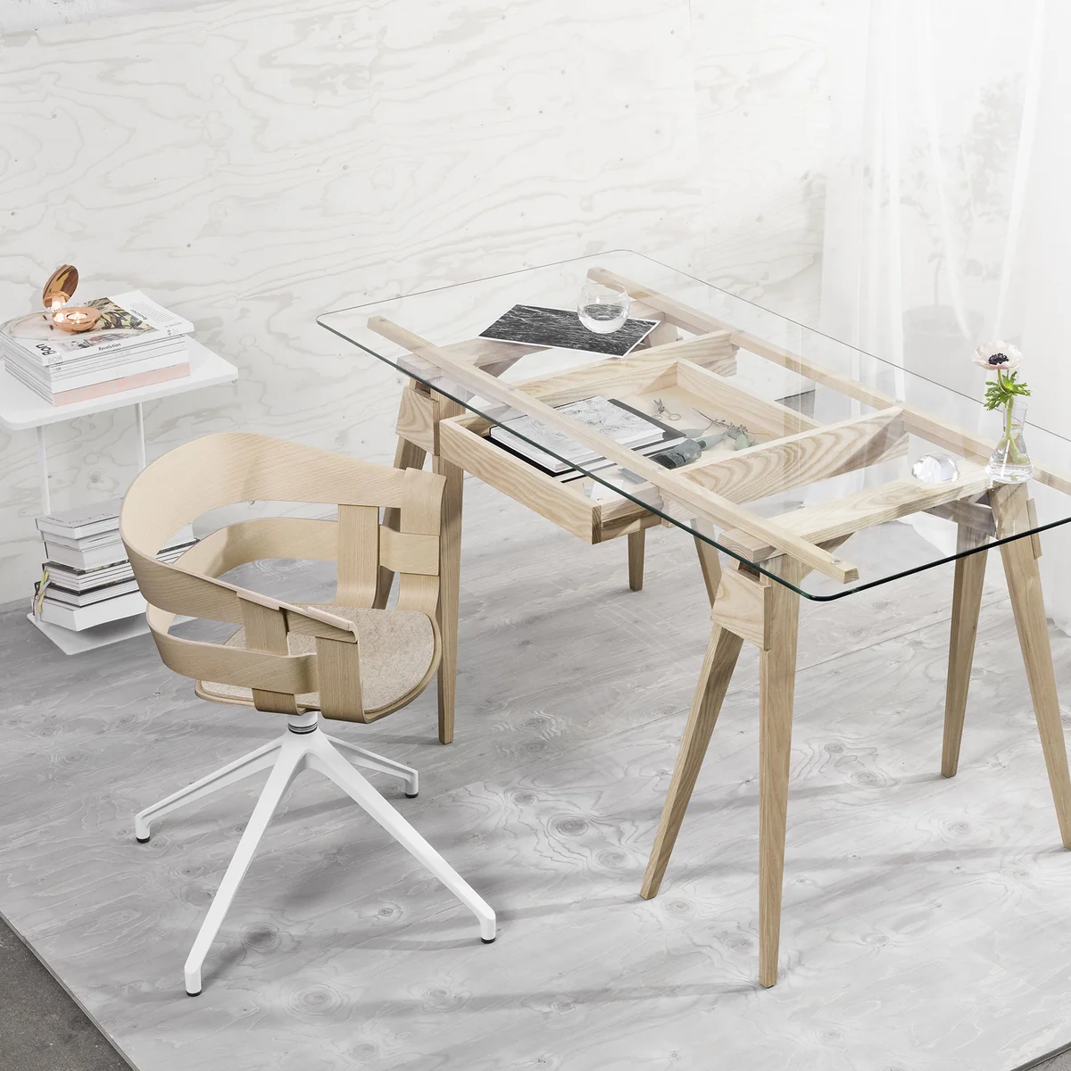 The Wick Chair doesn’t just fulfil all the requirements of ergonomics, but is also highly functional: for instance, the chair can be easily hooked to a table top from the backrest. Especially handy when the floor needs to be cleaned.