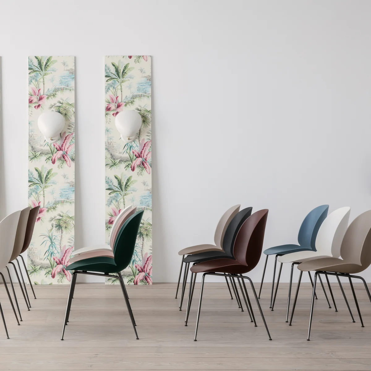 The Beetle Dining Chair by GamFratesi for Gubi is a chair with unlimited possibilities. Originally designed as an upholstered chair, the non-upholstered version with polypropylene shells gives the chair a light and fresh expression. The designer duo was inspired by the world of insects. The design of the chair is based on the typical features of a beetle. beetle ).