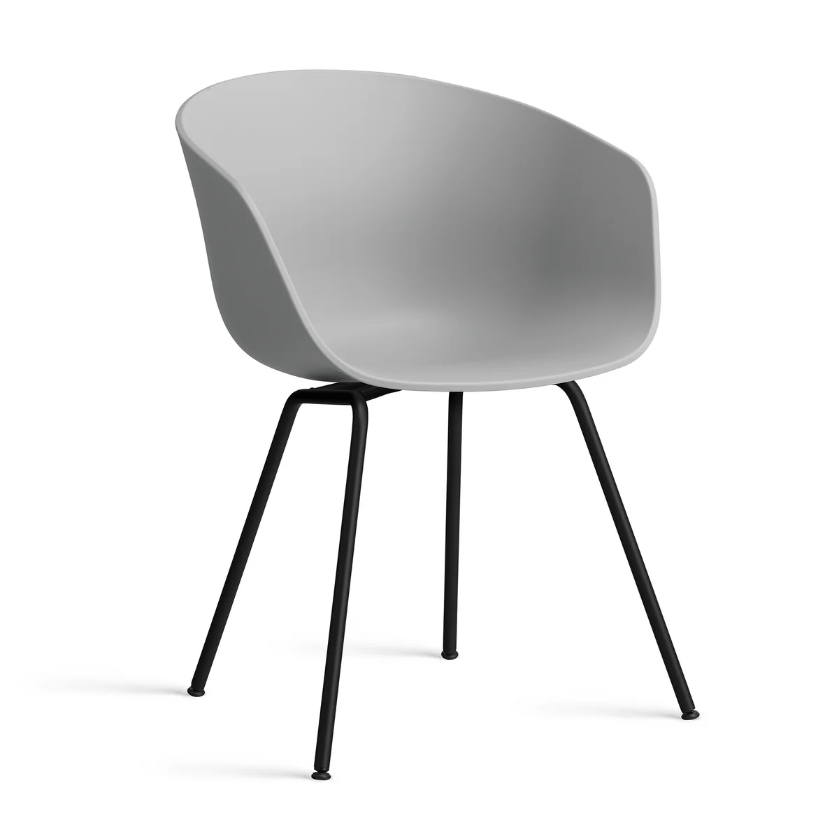 The design of the About a Chair AAC26 exudes a functional simplicity that is characteristic of the entire AAC series. The large seat shell consists of a curved backrest with armrests, which ensures excellent comfort and a soft, uniform silhouette. The four-legged curved tubular steel base has a minimalist expression and offers a firm stand.