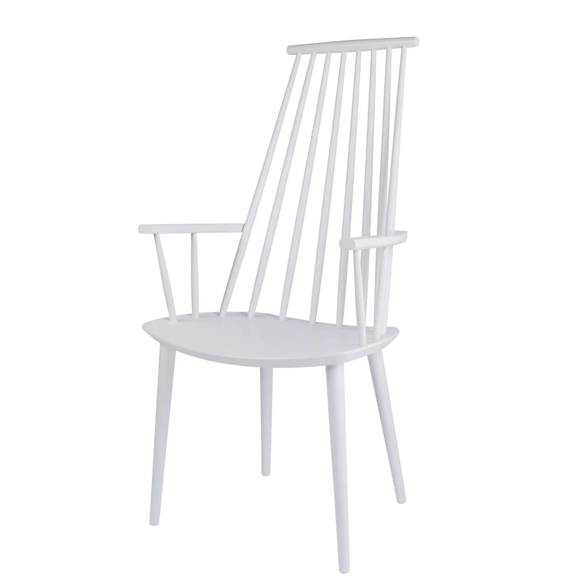 Originally the J110 Chair was designed with the idea of democratising good and functional design: Borrowing from the typical Windsor chairs of the 1 8. century, the J110 interprets the slender wooden rods and high backrest in a timeless design. The slenderness of the rods and the material structure make the dining chair from HAY appear stable and light at the same time. For these reasons, the J110, produced by FDB at the time, quickly became a success.