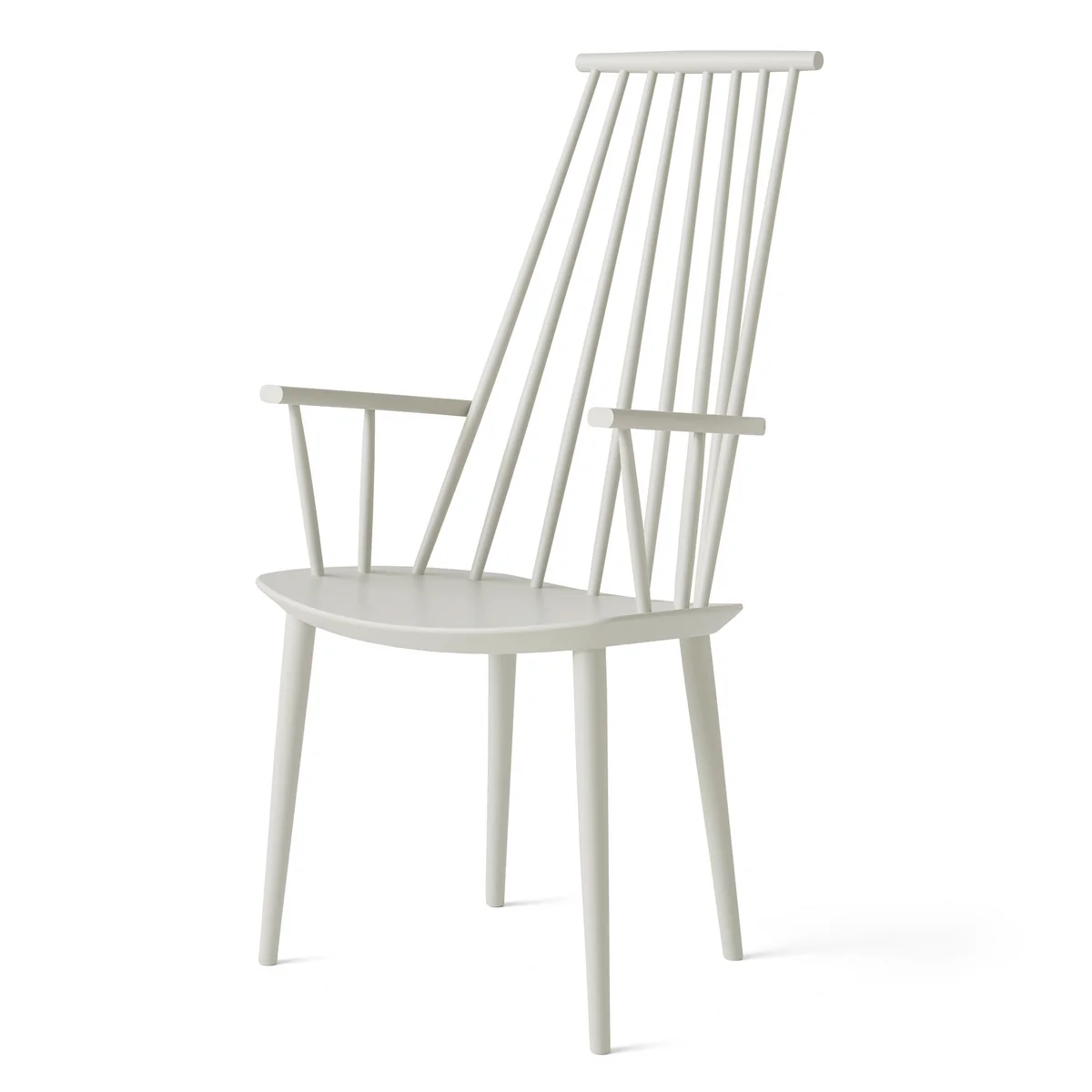 Originally the J110 Chair was designed with the idea of democratising good and functional design: Borrowing from the typical Windsor chairs of the 1 8. century, the J110 interprets the slender wooden rods and high backrest in a timeless design. The slenderness of the rods and the material structure make the dining chair from HAY appear stable and light at the same time. For these reasons, the J110, produced by FDB at the time, quickly became a success.