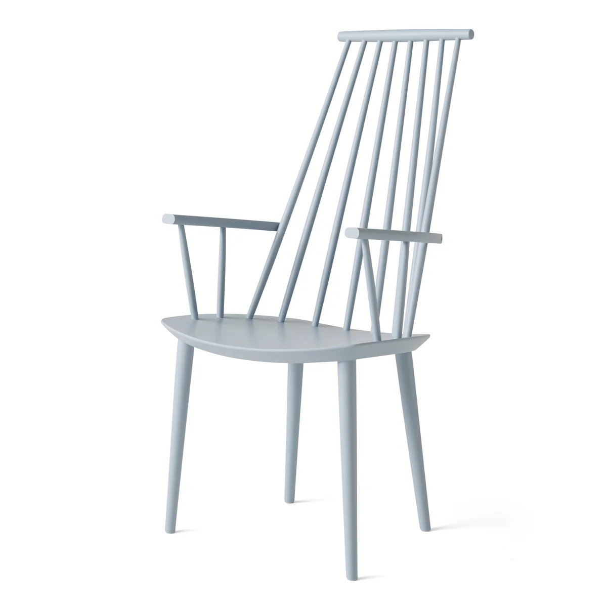 HAY manufactures the J110 Chair from beech wood. With a seat height of 44.5 cm, the J110 from HAY is perfect for the dining table, while its high seat back has the effect of an armchair:: The wide seat and high backrest give the J110 an unusually high level of comfort for dining table chairs.