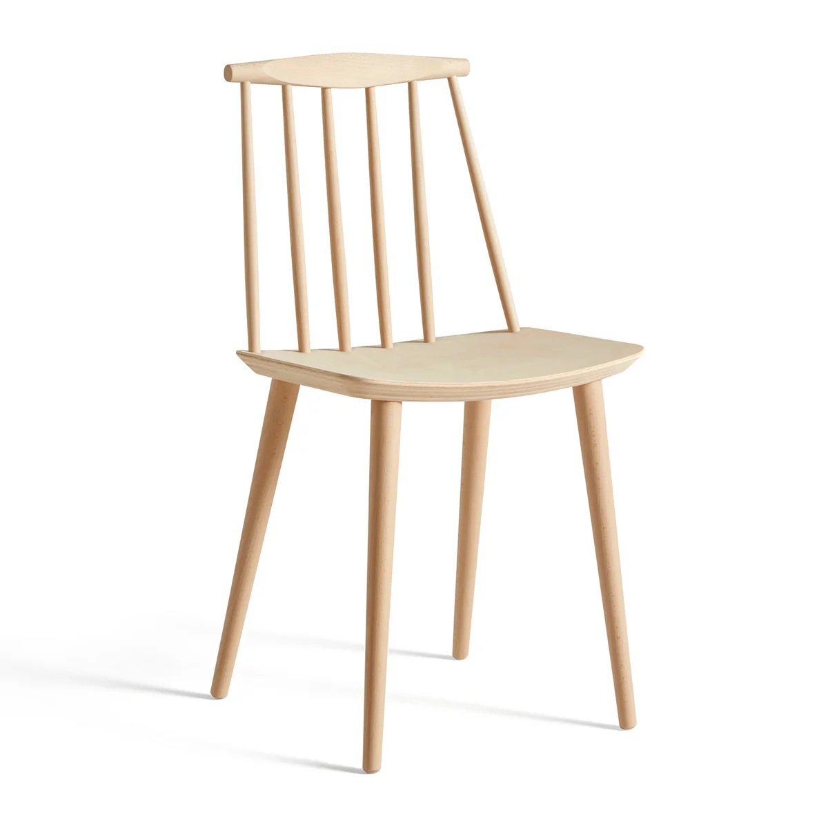 The production of beech wood and the slender shape of the bars on the backrest give the J77 Chair by HAY a look that is at once light and yet solid. The wide seat makes the J77 comfortable, while its classic minimalist design allows it to fit into a wide variety of environments.